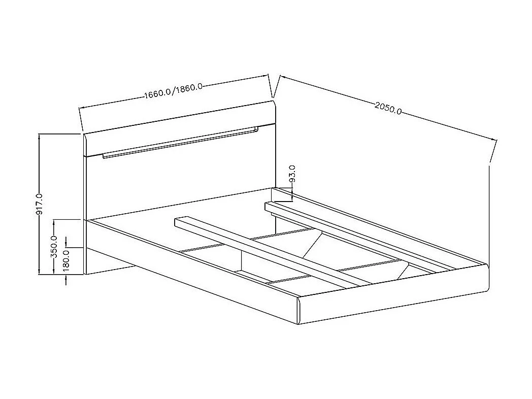 Lit adulte design 160x200 collection LUCIA. Coloris blanc brillant.