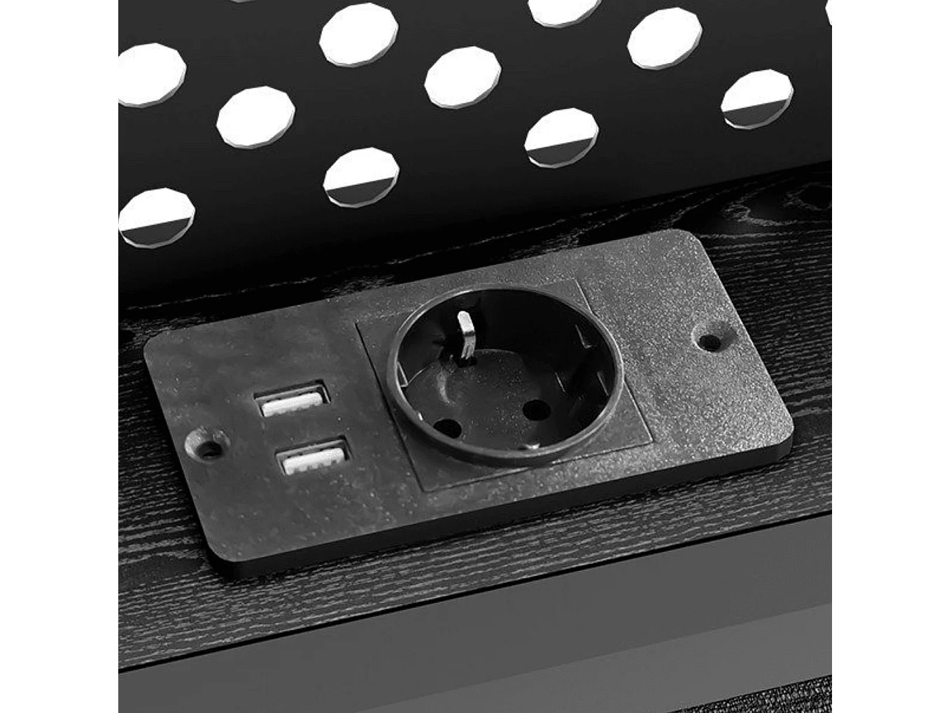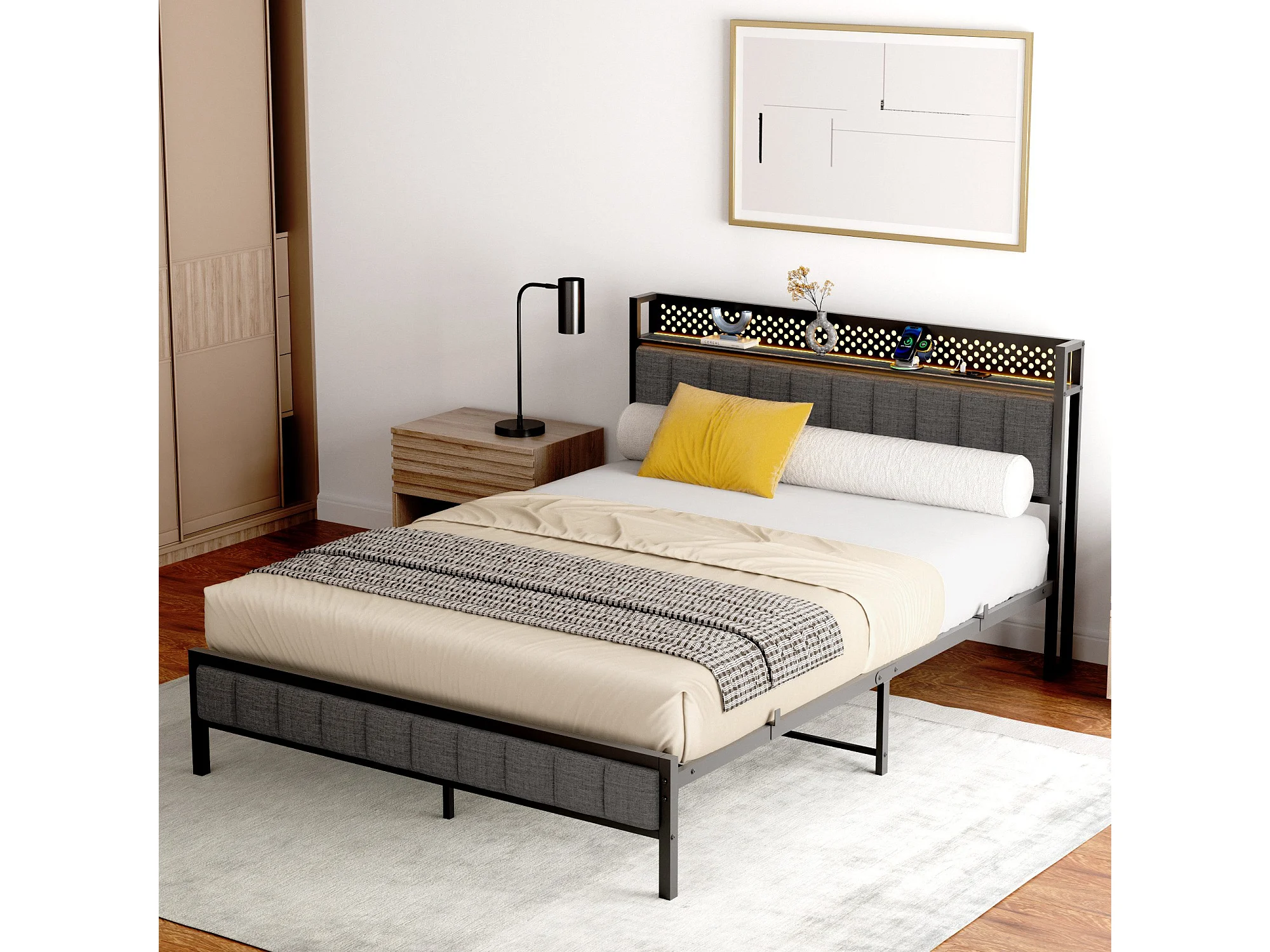 Lit adulte double 140x200 cm noir avec USB, lit en métal, noir, sans matelas