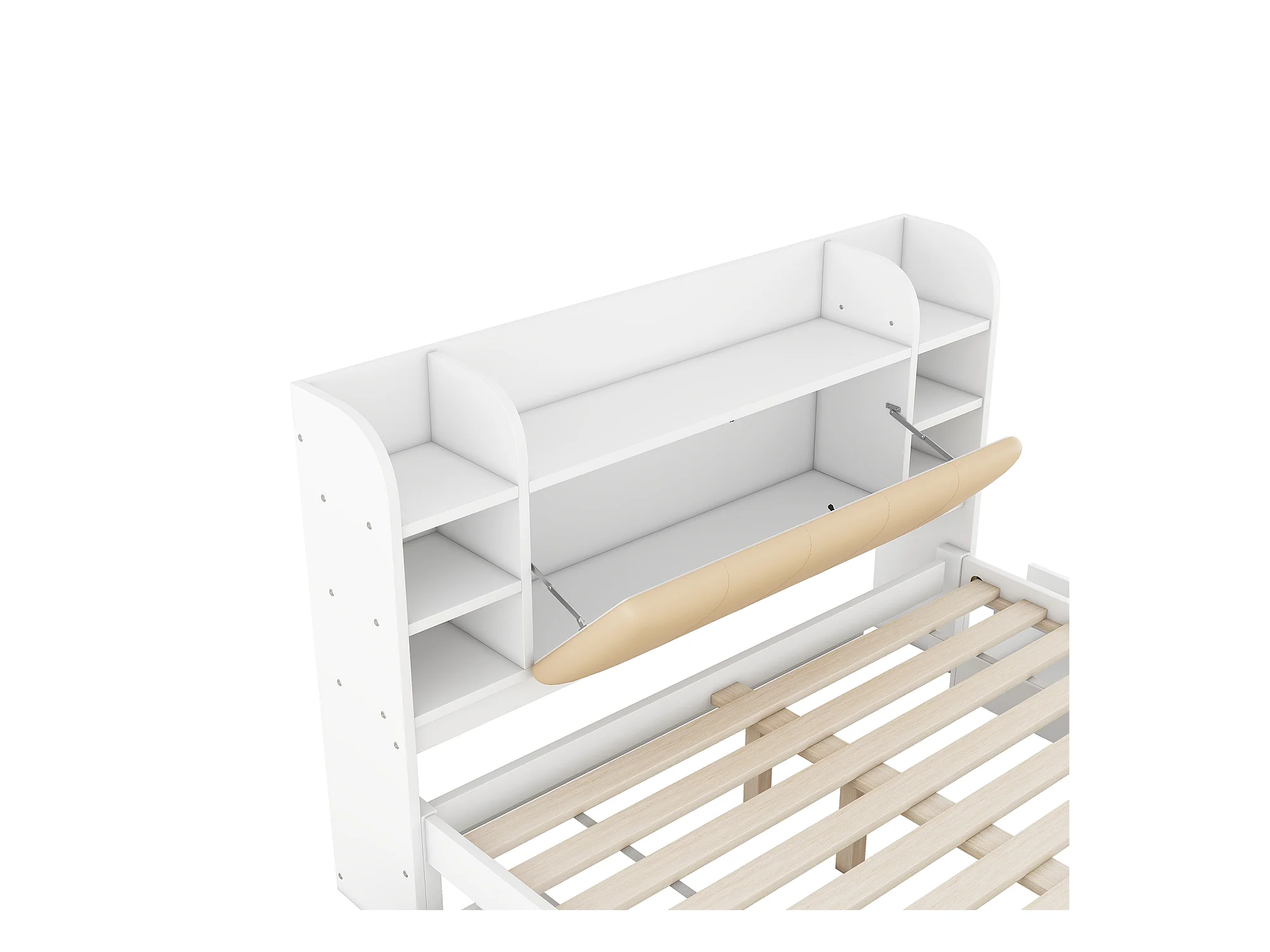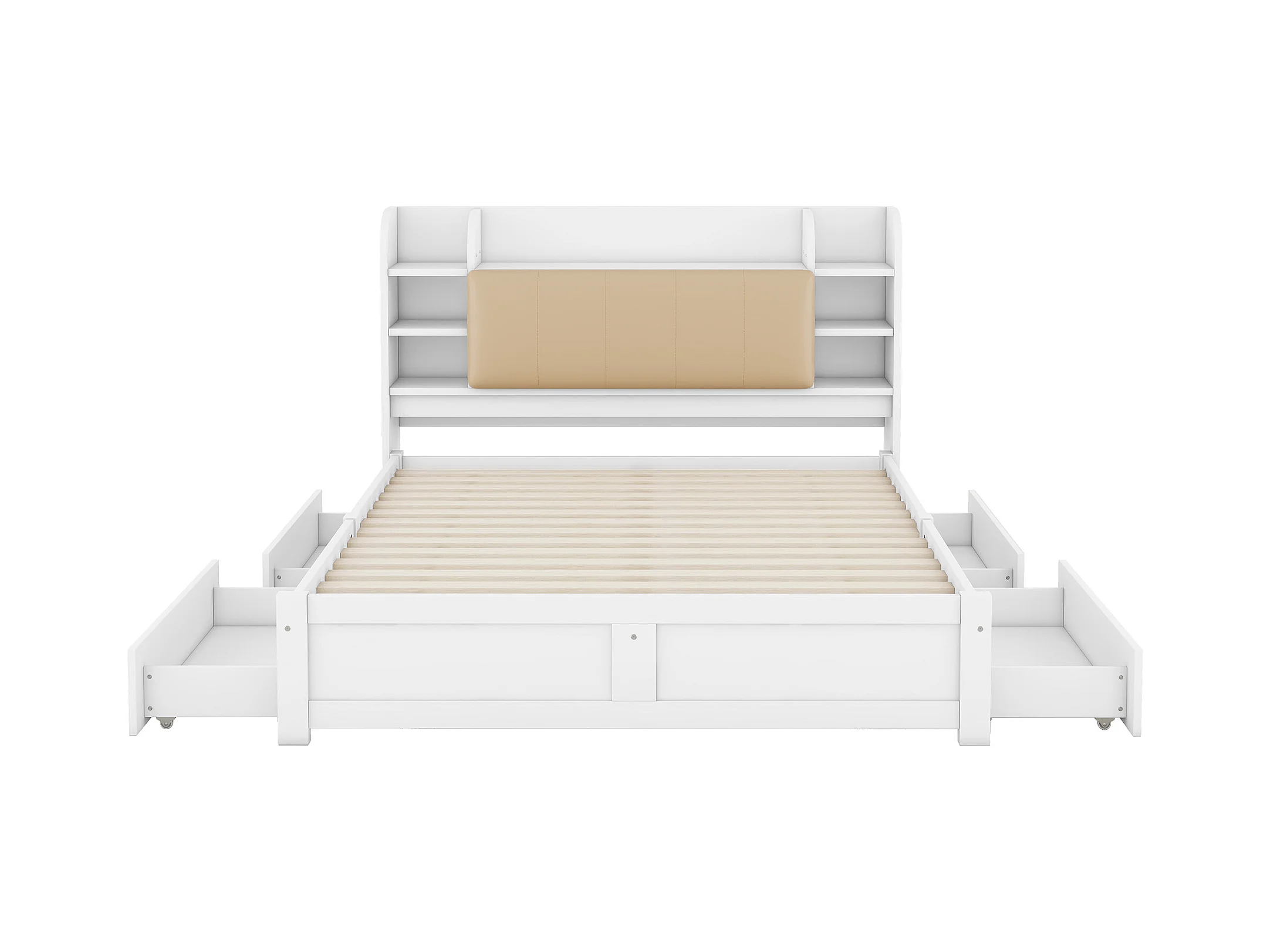 Lit adulte double 160x200 cm cm avec sommier - tête de lit avec rangements et 4 tiroirs - bois - blanc (sans matelas)