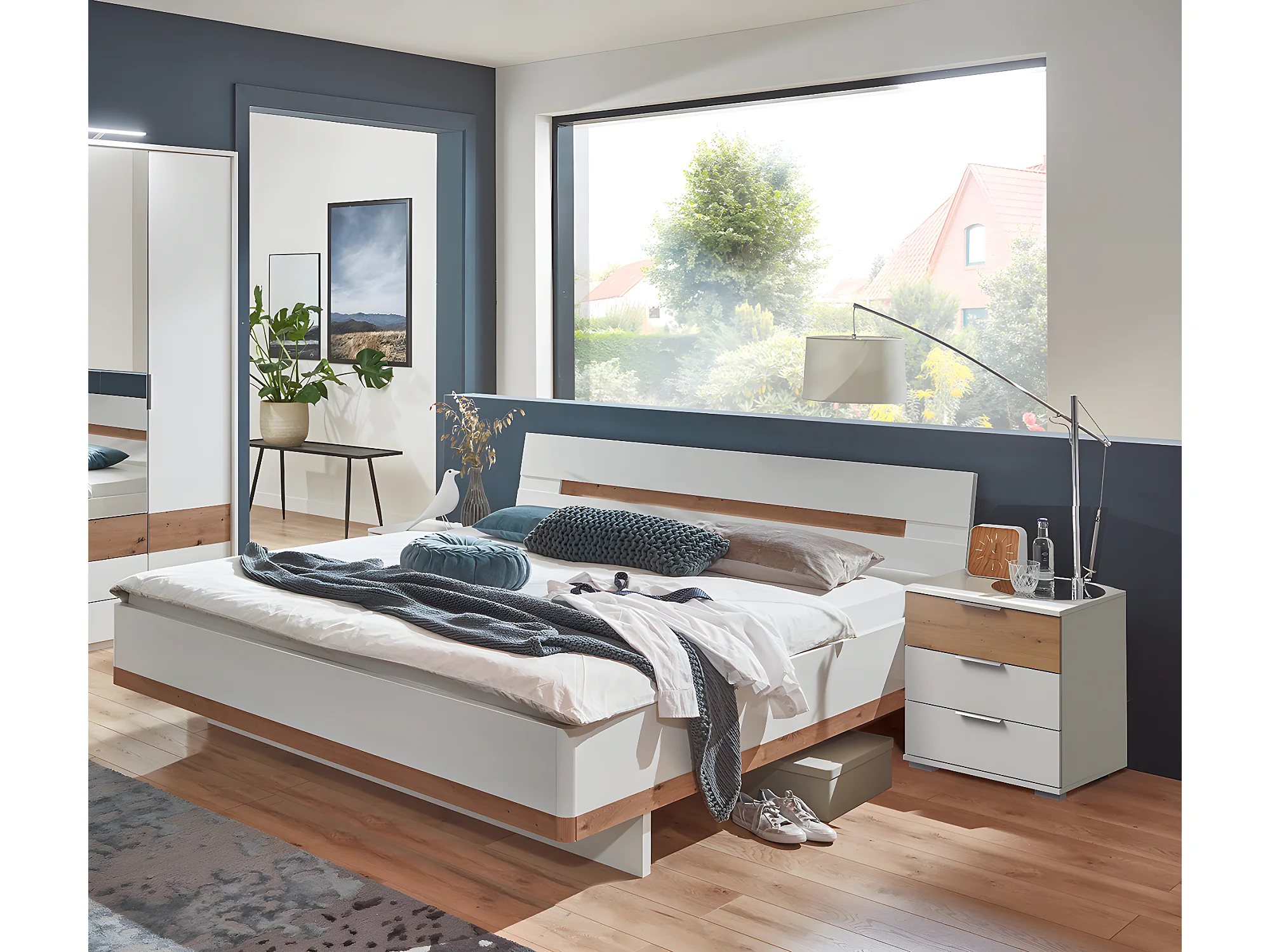 Lit adulte double 160x200cm Queen Size + 2 chevets coloris blanc/imitation chêne artisan
