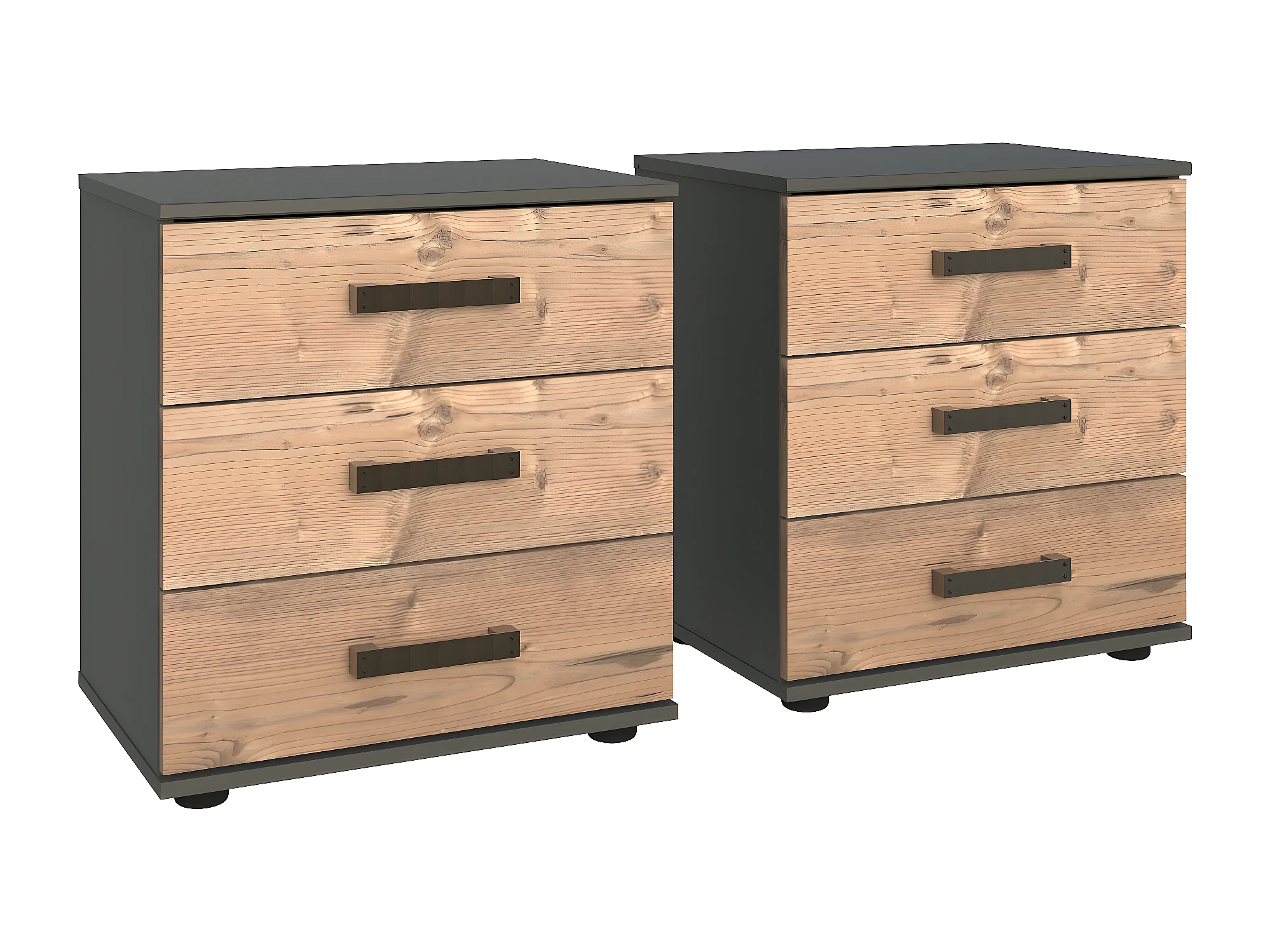 Lit adulte double + 2 chevets coloris imitation chêne/gris foncé - L. 169 x P. 210 x H. 96 cm
