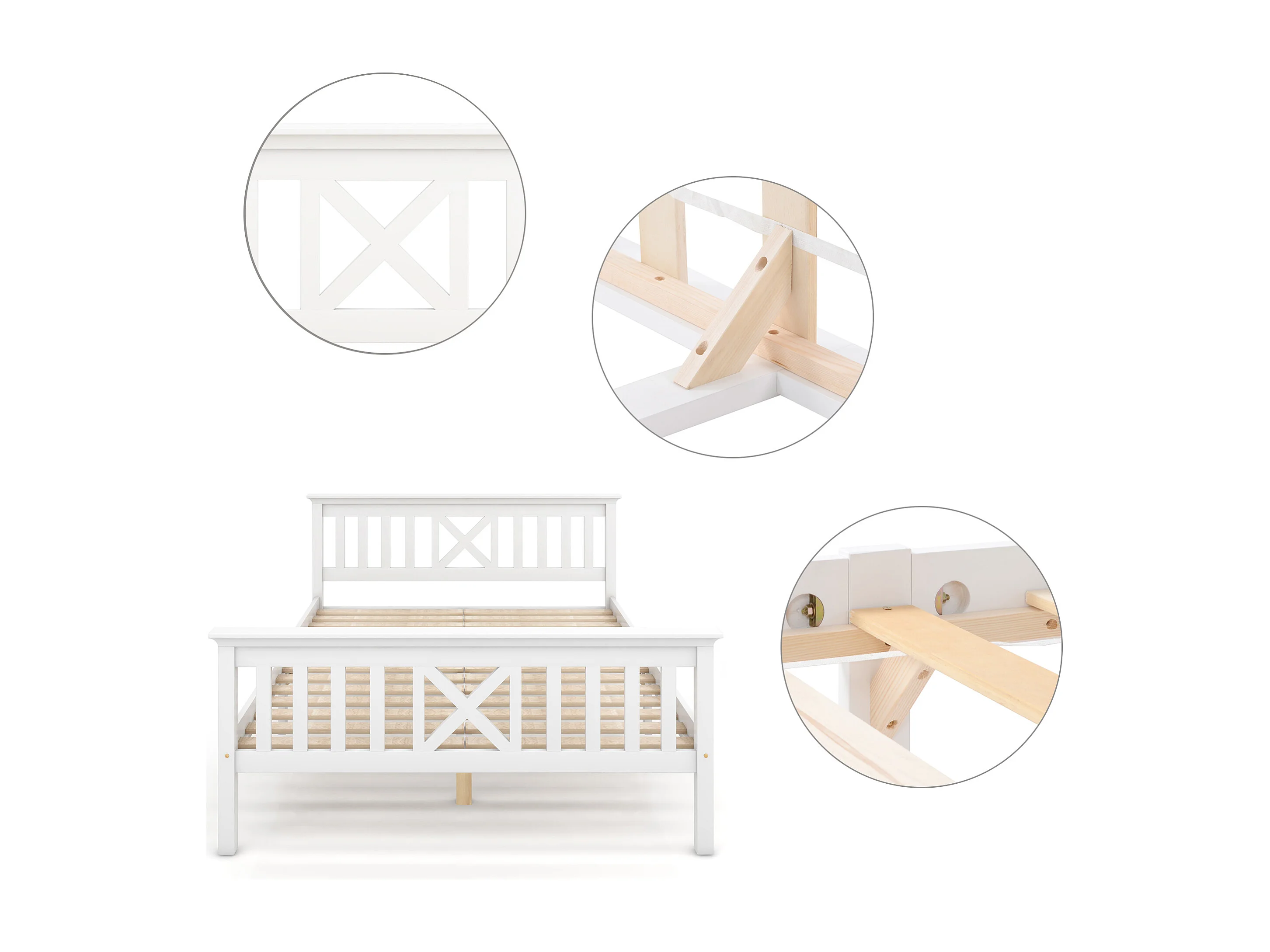 Lit Adulte Double en Bois 140x200 cm Sommier à lattes et tête de lit - Blanc