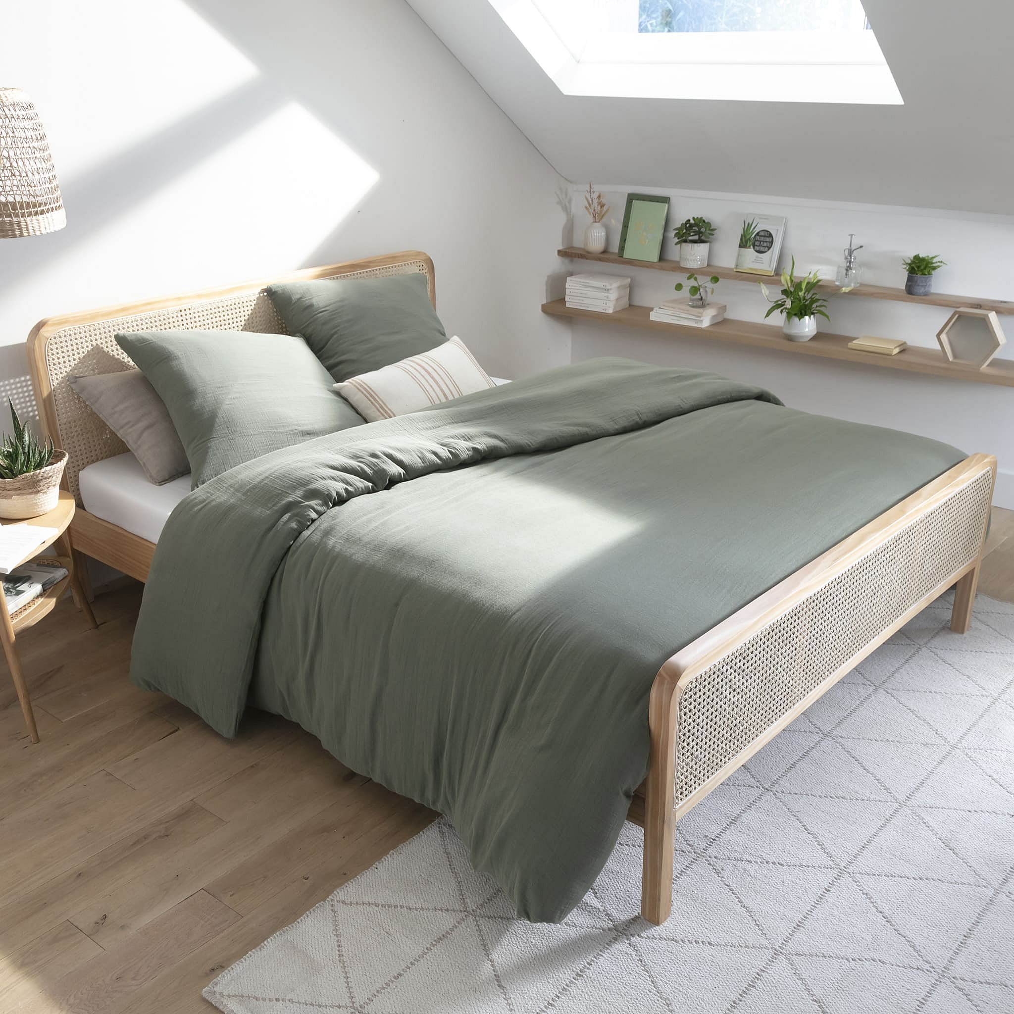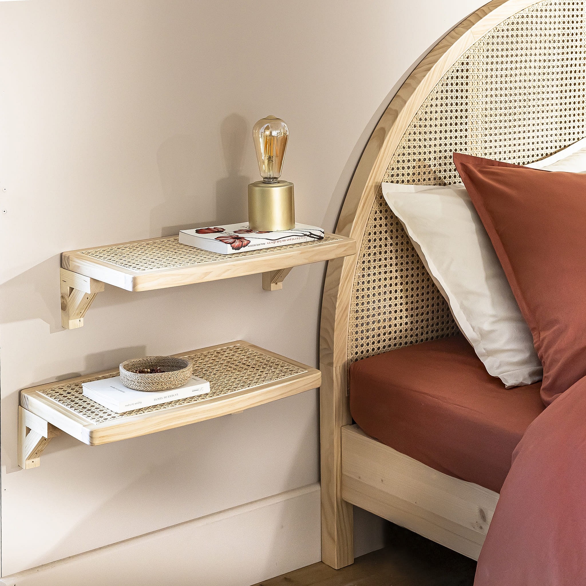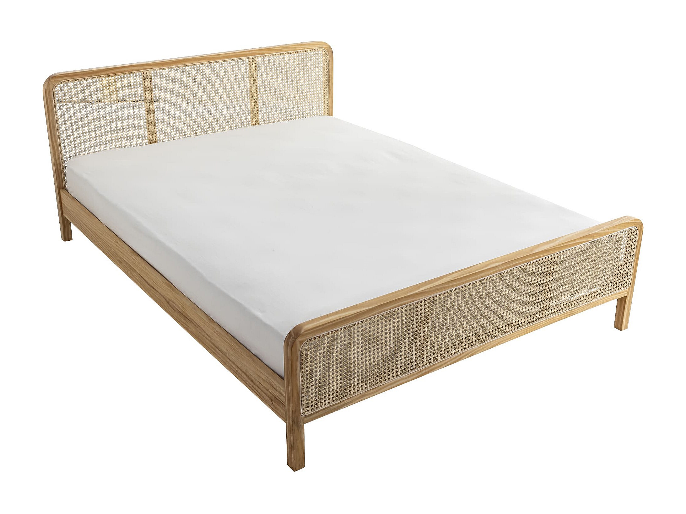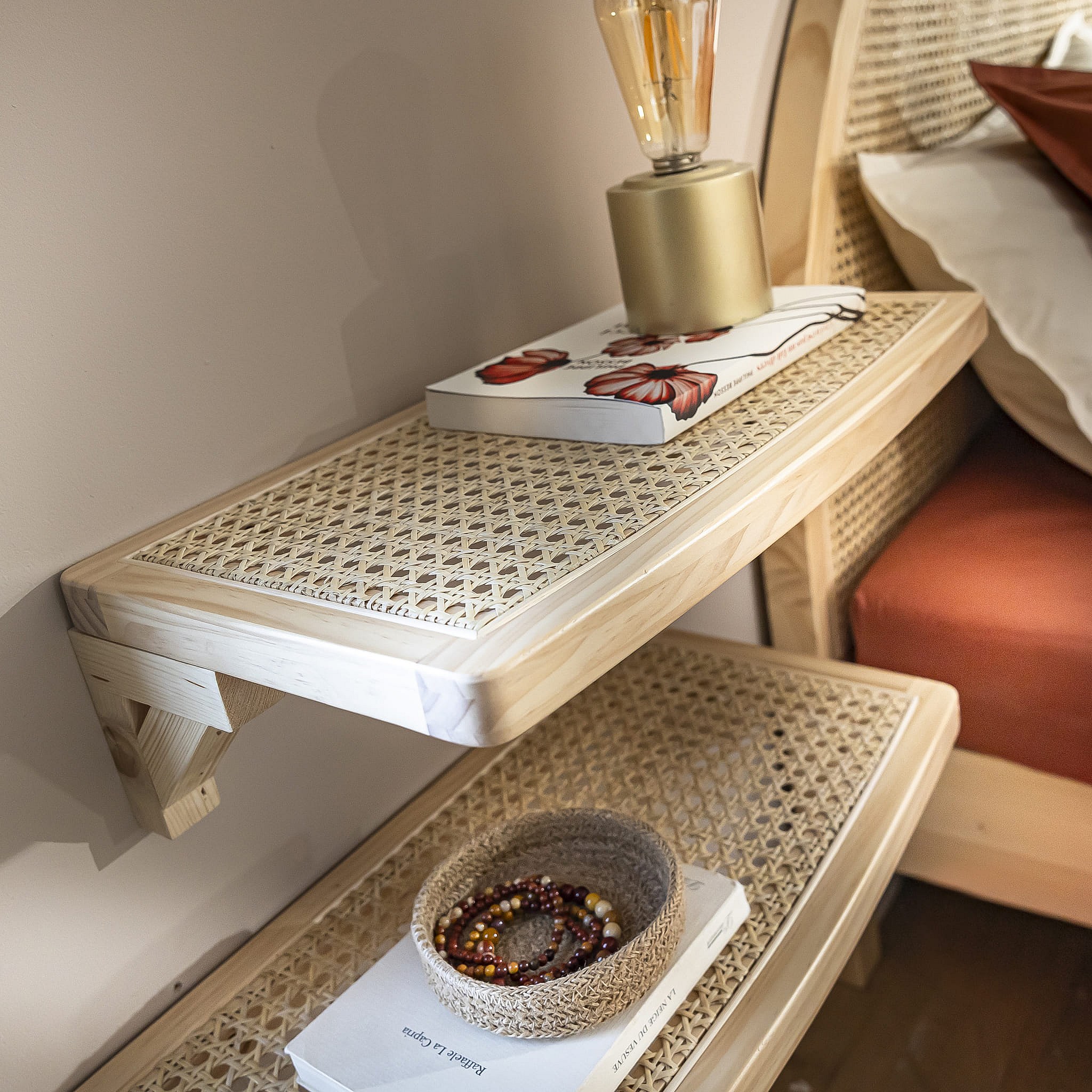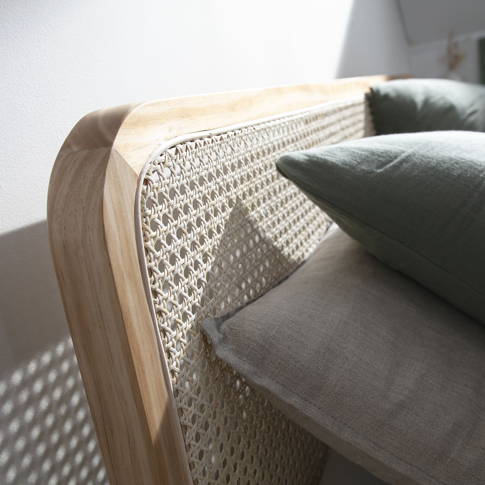 Lit adulte en pin massif avec véritable cannage 140x190 ANNA + set de 2 planches de chevet cannage - ANNA