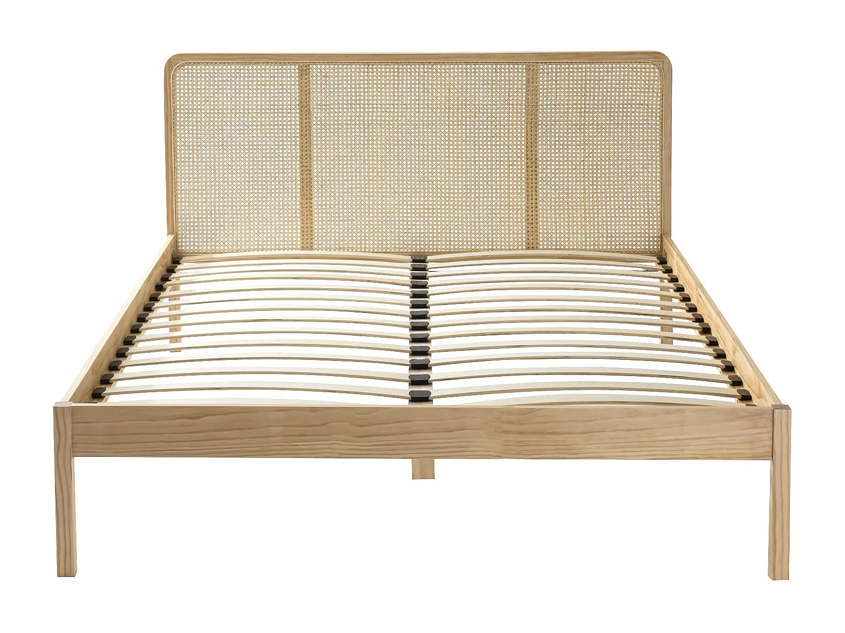 Lit adulte en pin massif tête de lit cannage ANNA 140x190 + 2 chevets cannage - ANNA