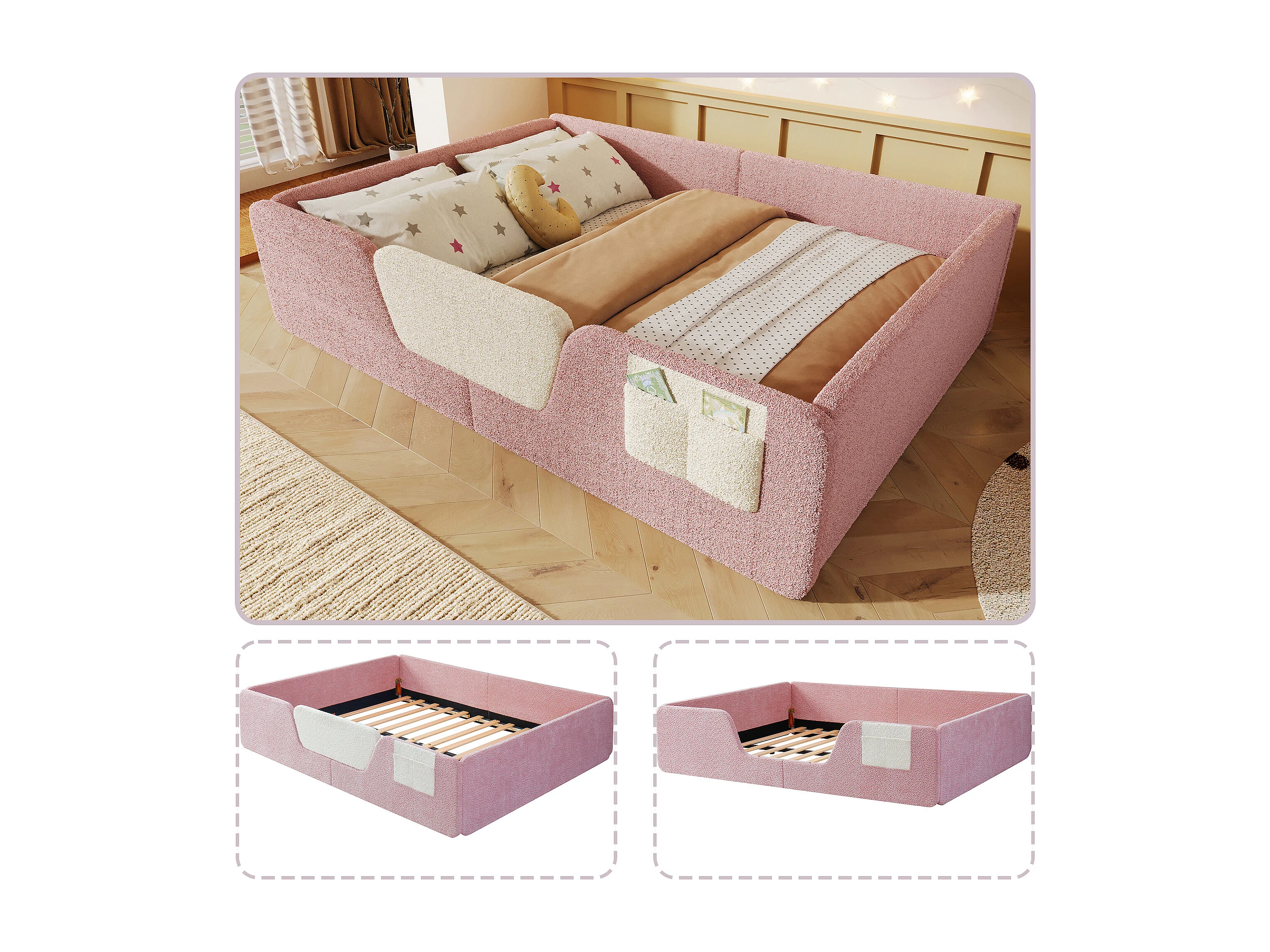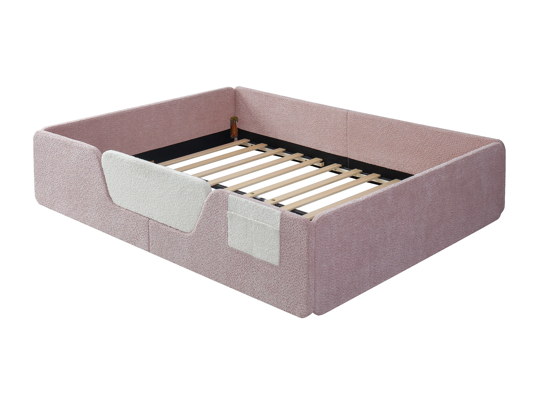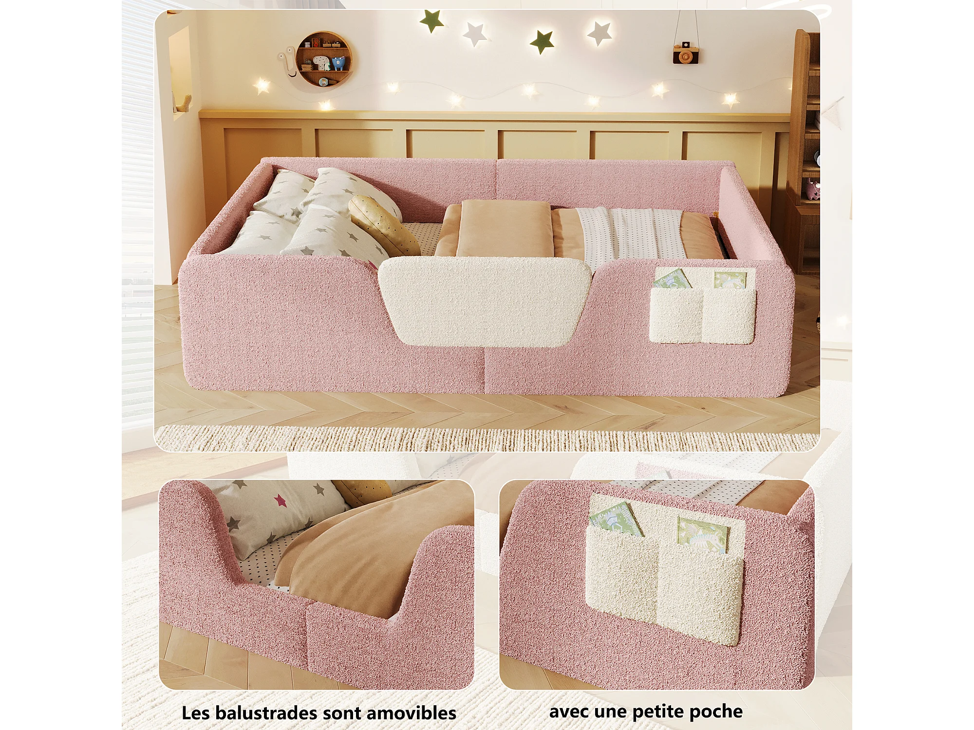 Lit adulte / enfant 140 x 190 cm avec barrières de sécurité amovibles - Tissu rose