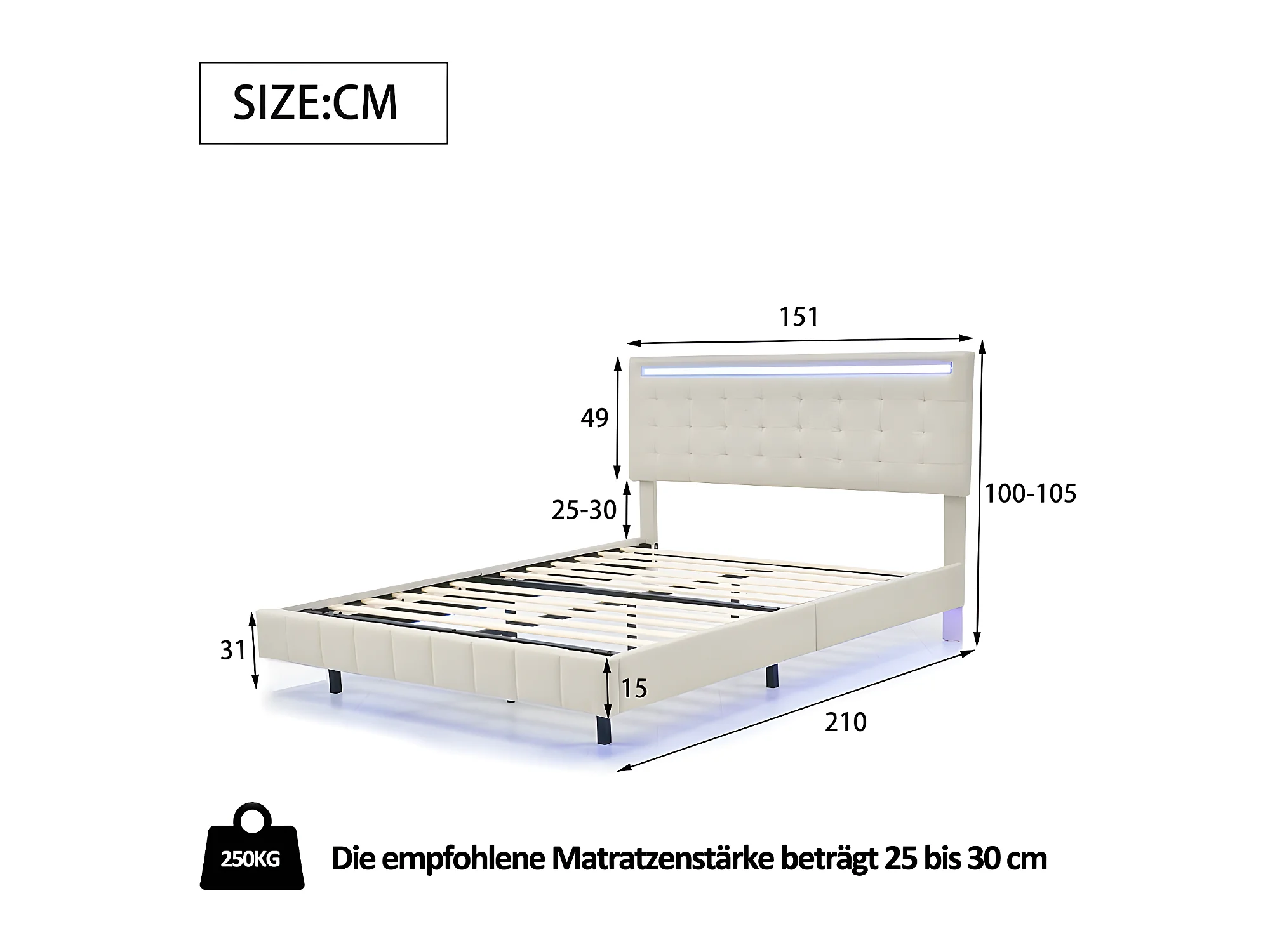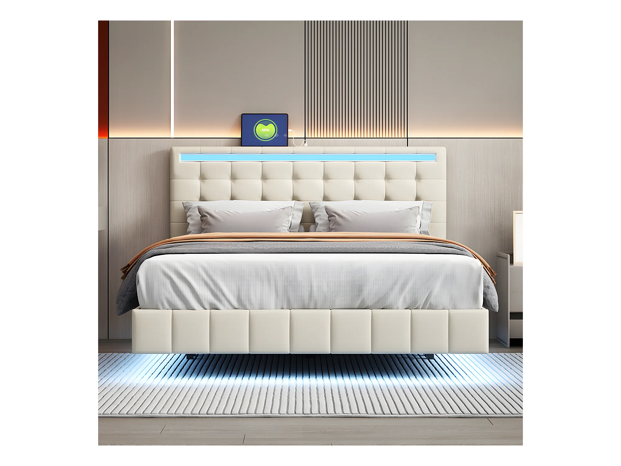 Lit adulte Lit 140 x 200 cm - avec lampes LED - beige - Sweiko