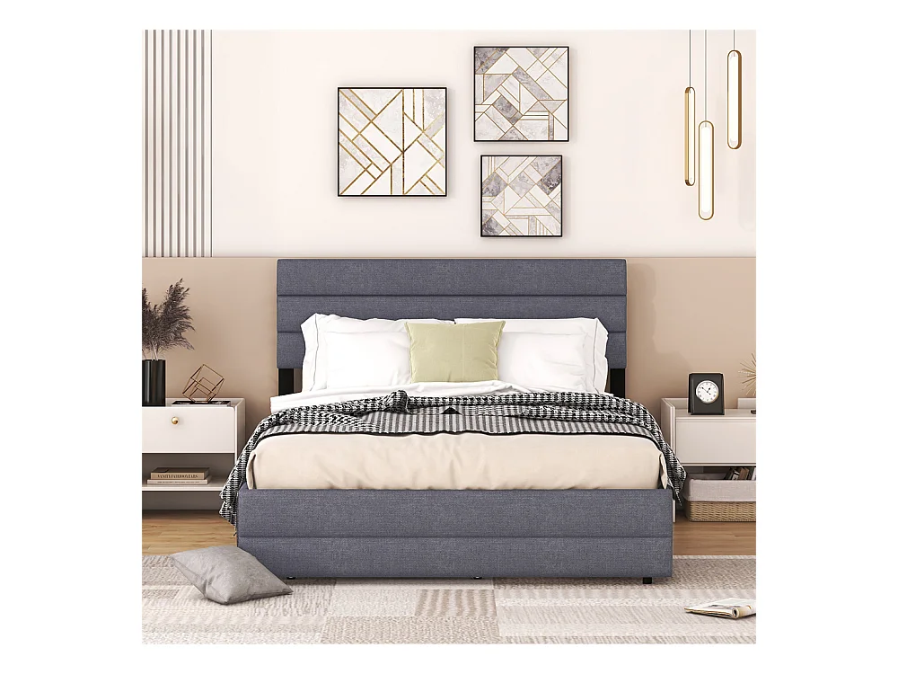 Lit adulte lit 140x200 cm avec brocheuse et deux tiroirs lit double lin gris