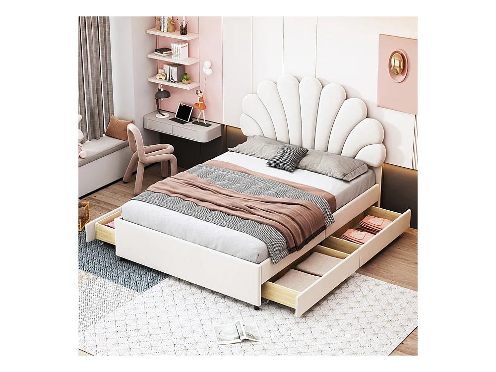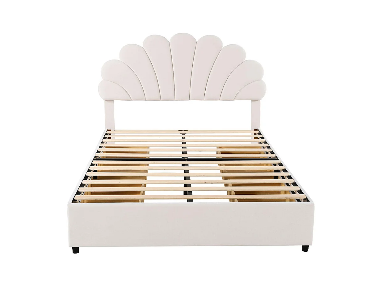Lit adulte lit 140x200 cm lit rembourré lit cadre à lamelles lit 4 compartiments de rangement lit double velours beige