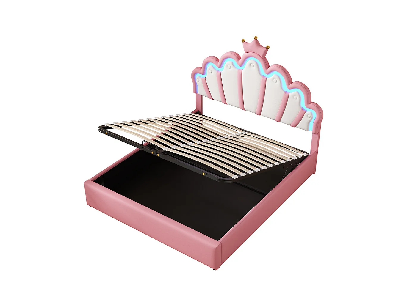 Lit adulte lit 140x200 cm lit rembourré lit de princesse éclairage d'ambiance réglable lit double pu rose