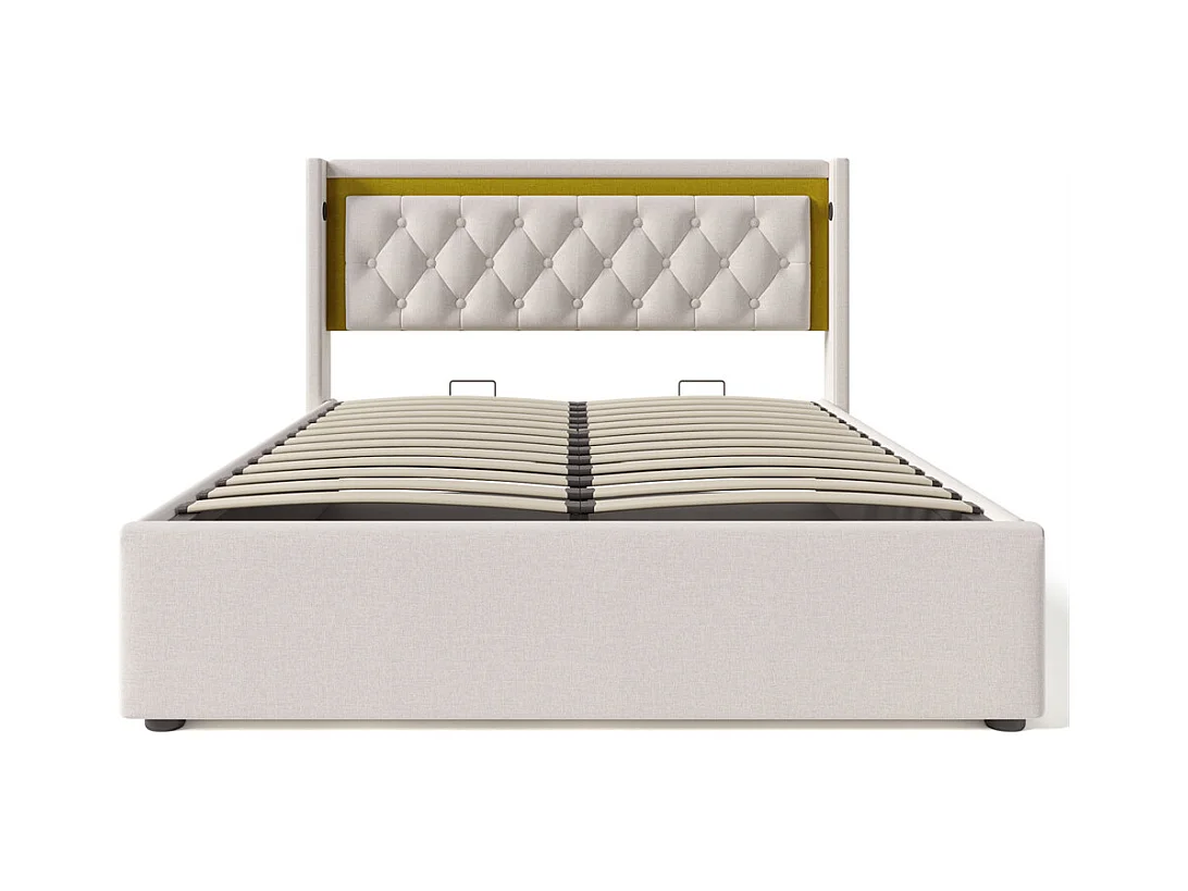 Lit adulte lit 140x200 cm lit rembourré lit de rangement lit sommier à lattes en bois lit double coton beige