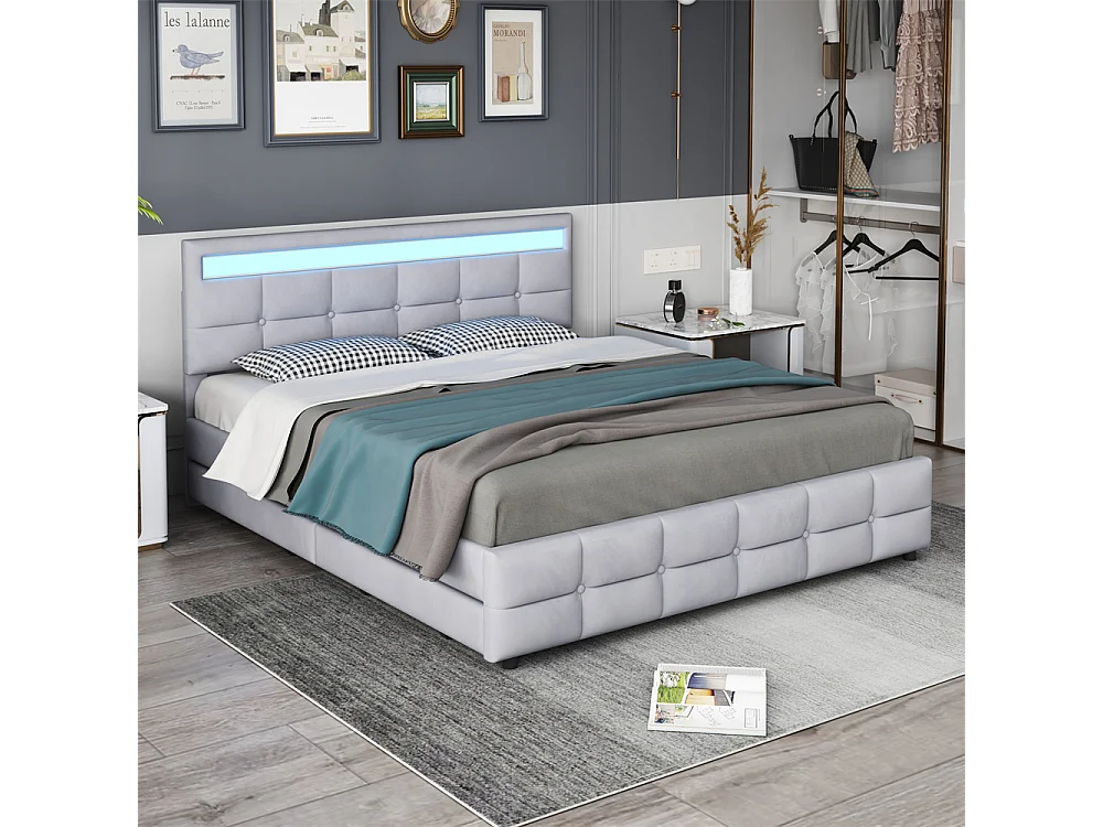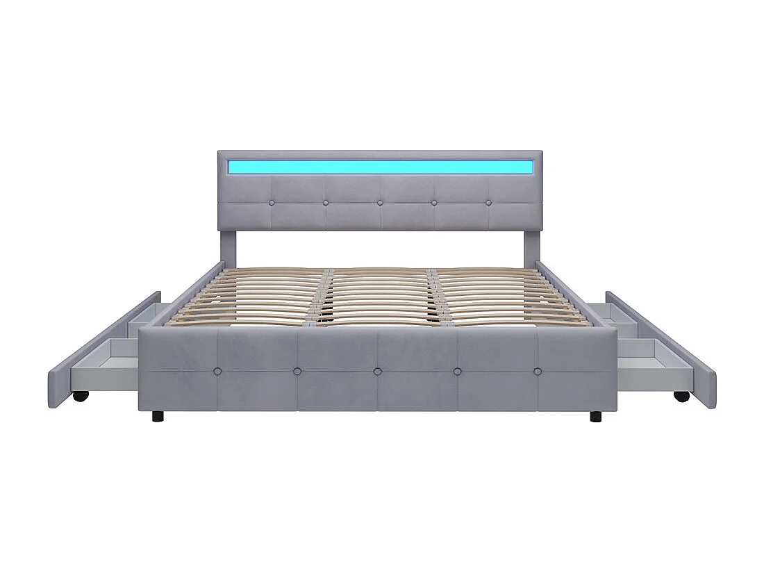 Lit adulte lit 180x200 cm lit led-rembourré lit 4 tiroirs lit sommier à lattes lit double velours gris