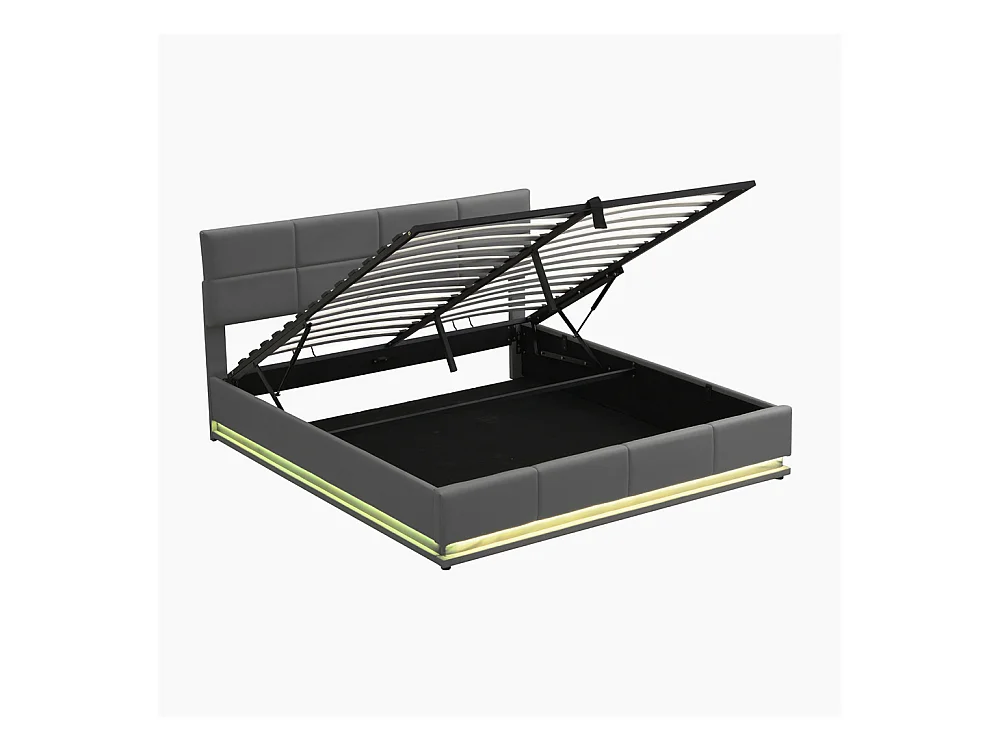 Lit adulte lit 180x200 cm lit rembourré hydraulique avec éclairage led lit double cuir synthétique gris foncé