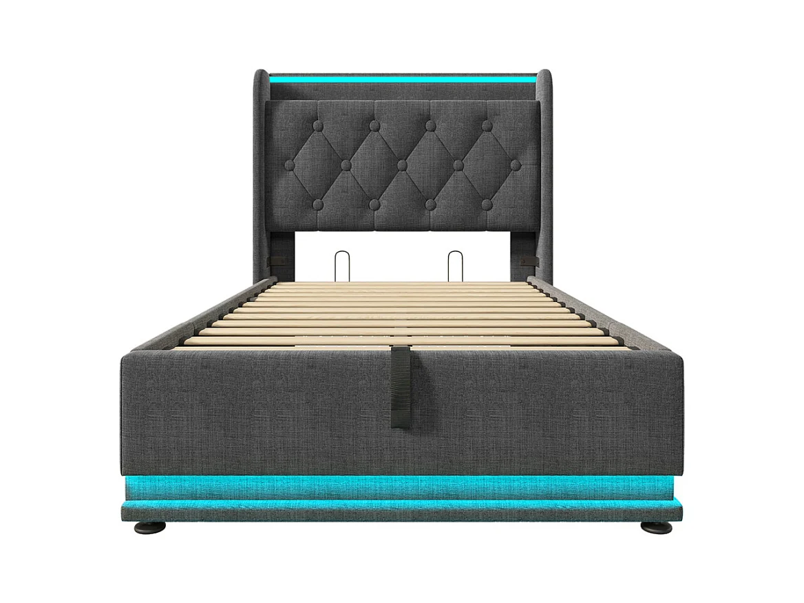 Lit adulte lit 90x200 cm lit rembourré hydraulique lit appui-tête rembourré avec fonction de recharge usb type-c Single lin gris