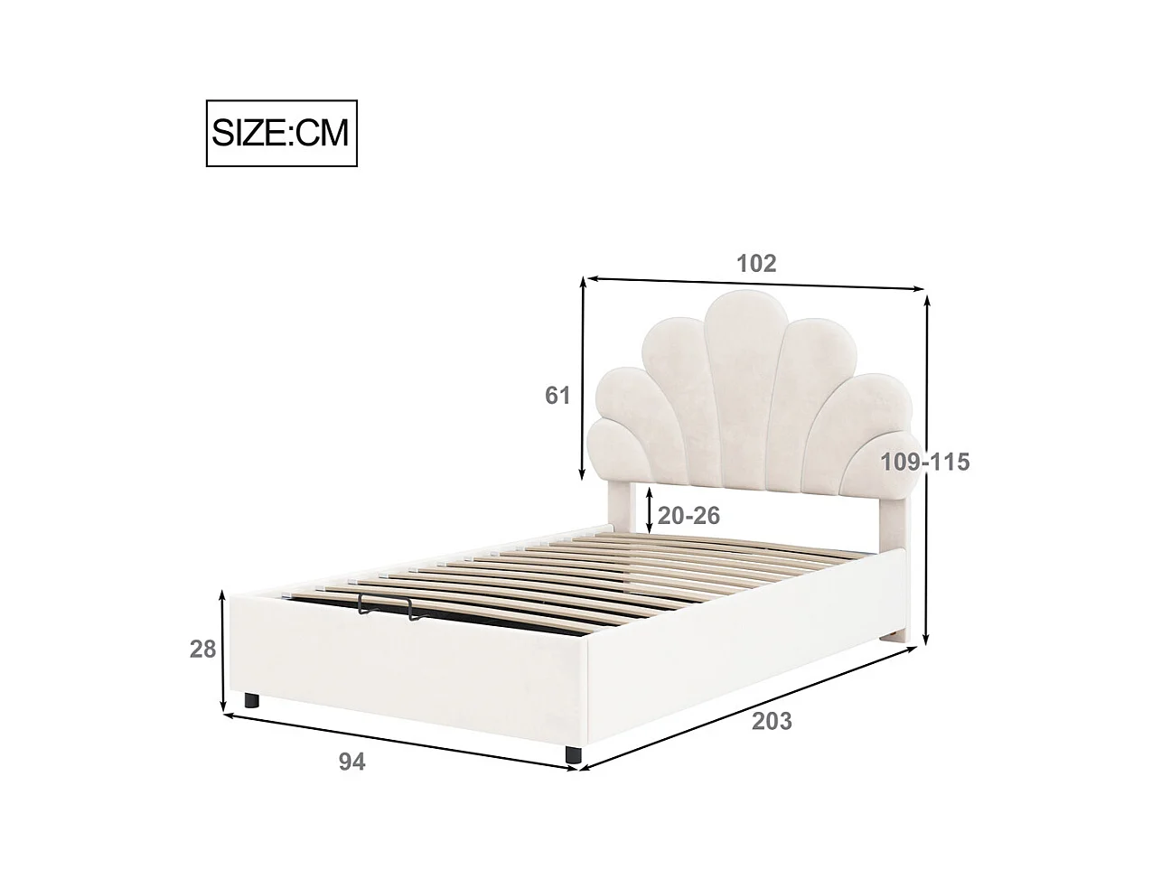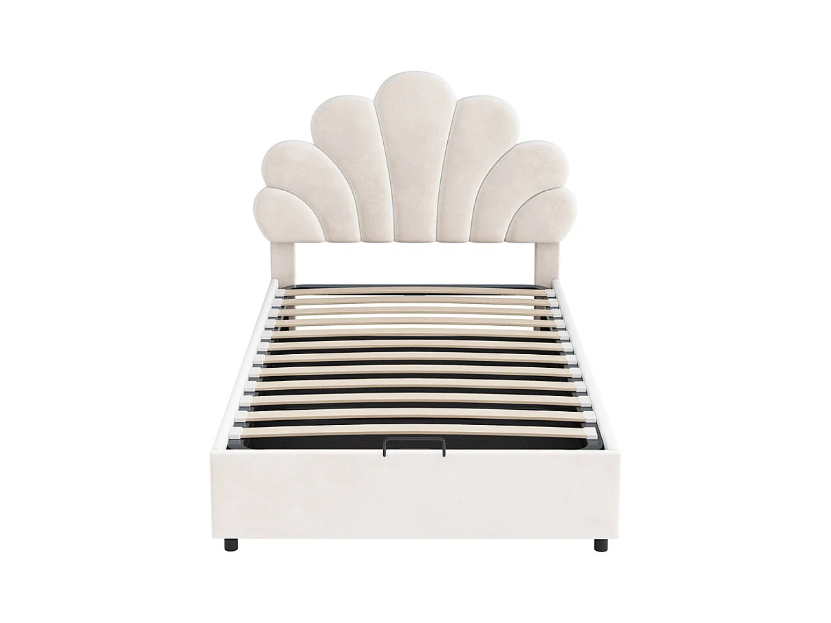 Lit adulte lit coffre lit 90x200 cm lit de rangement lit rembourré hydraulique lit cadre à lamelles Single velours beige