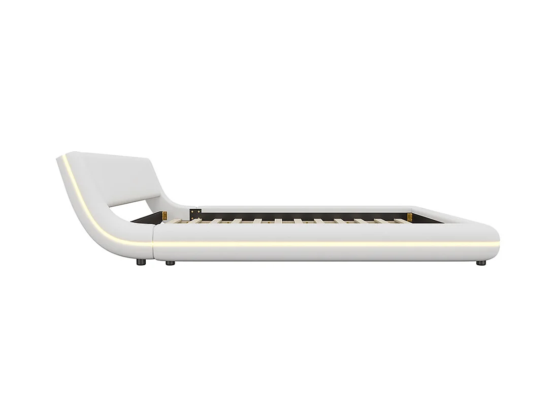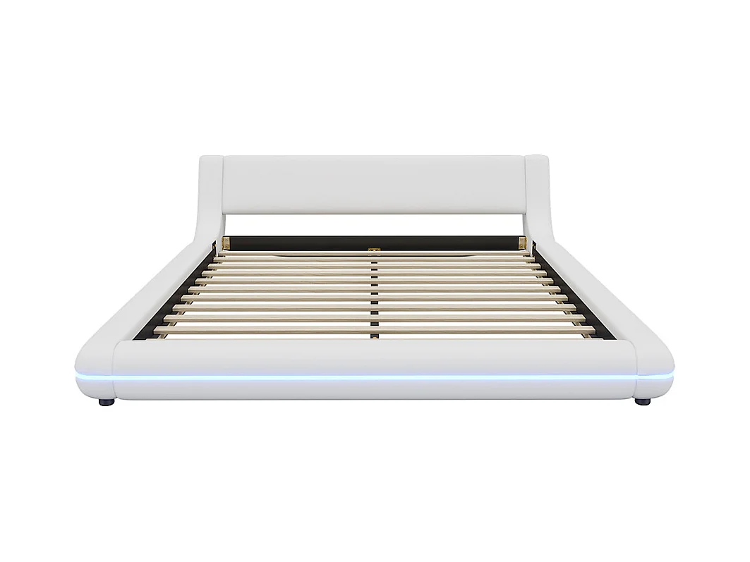 Lit adulte Lit double Lit 160x200 cm avec d'ambiance LED télécommande 24 touches PU blanc