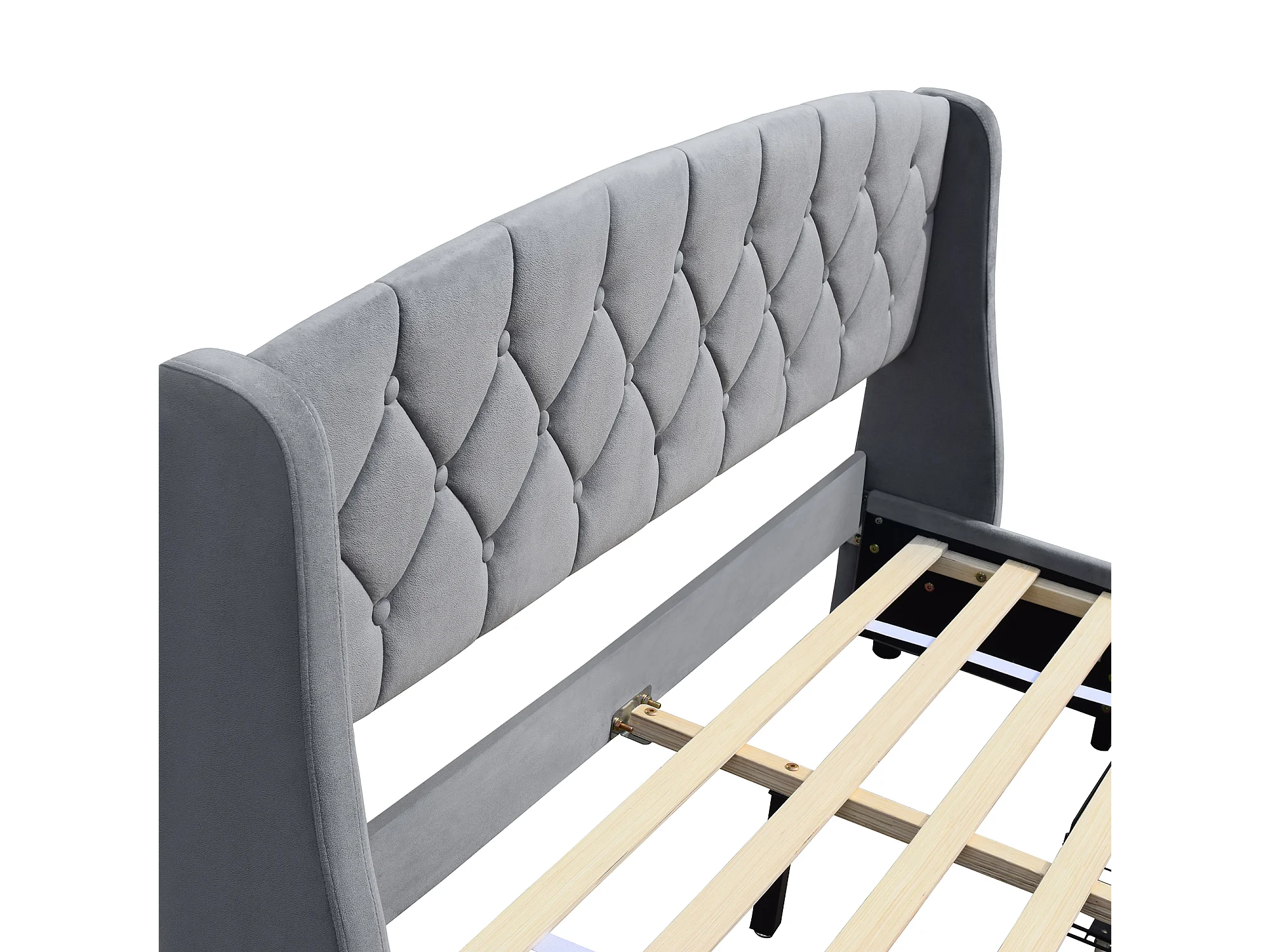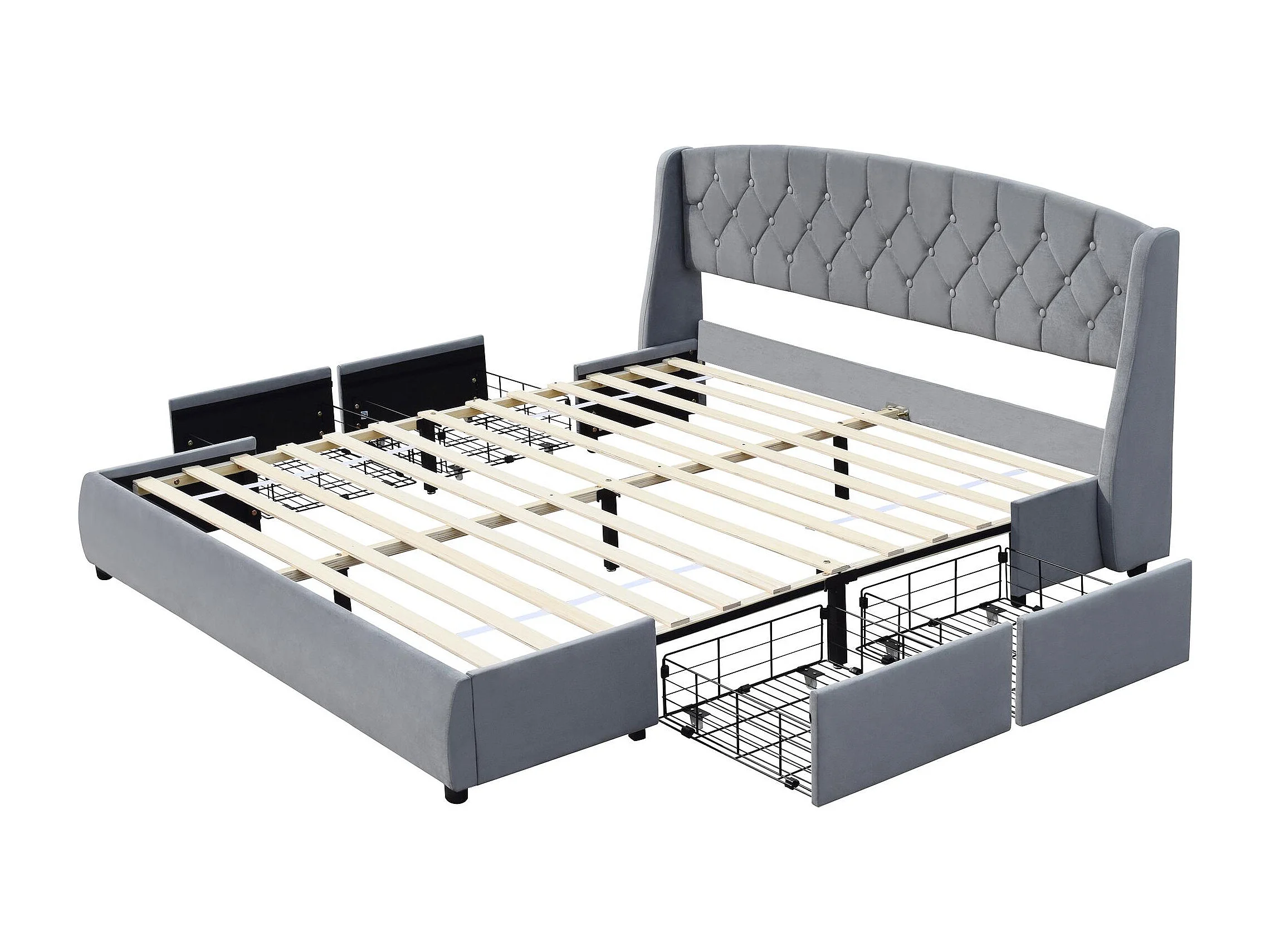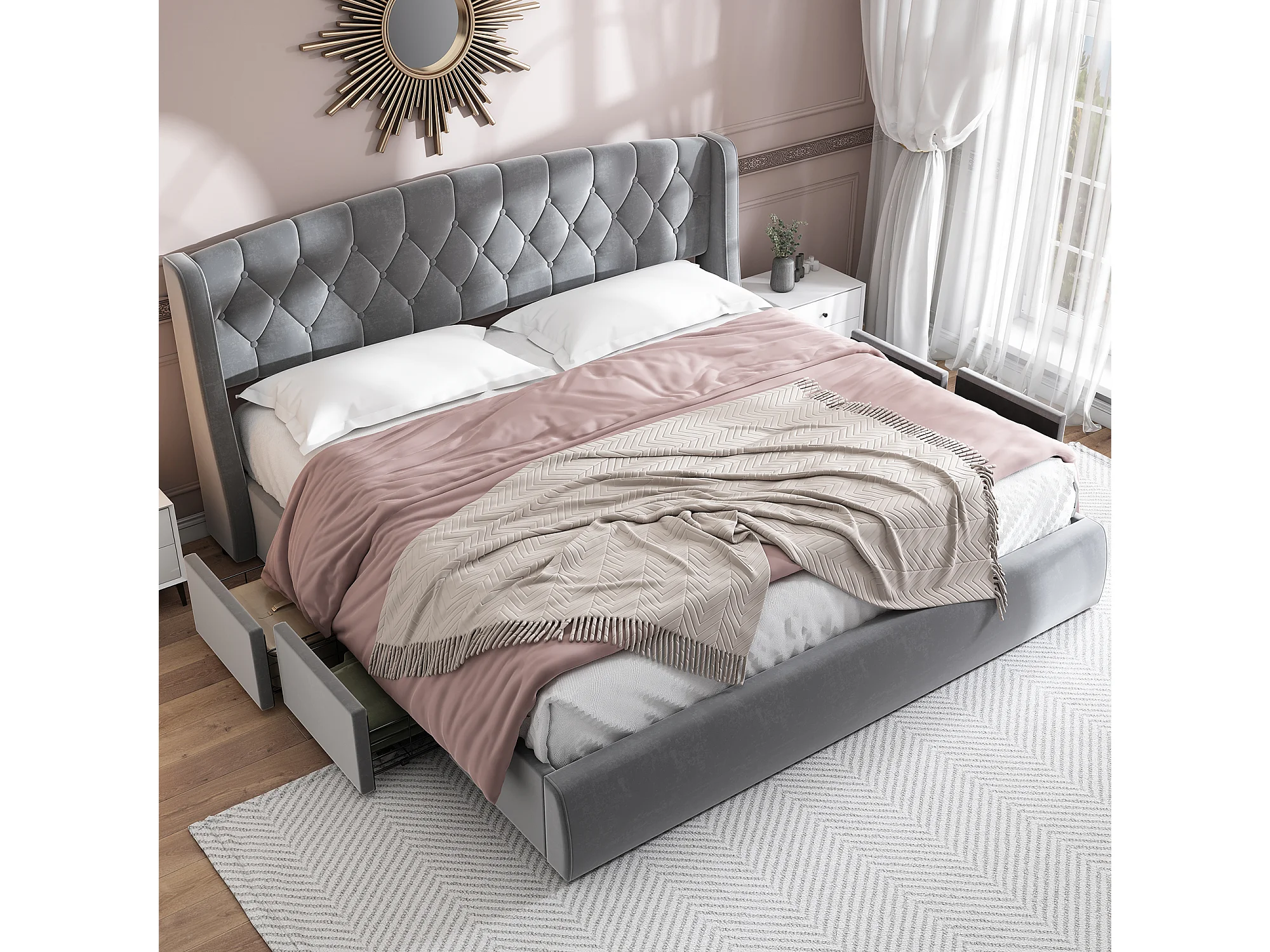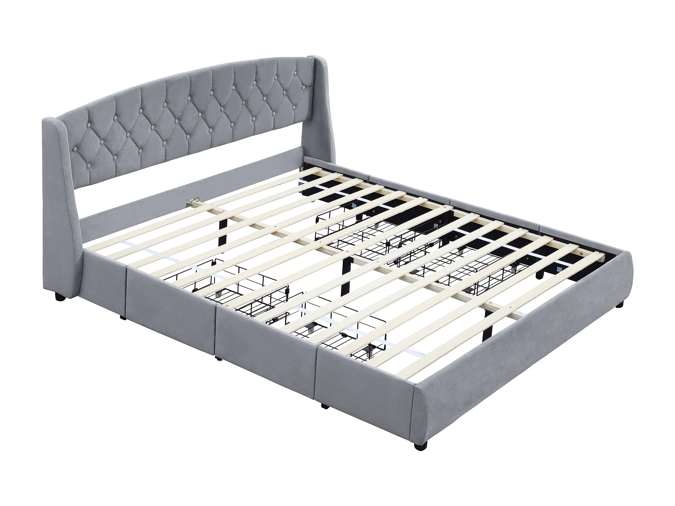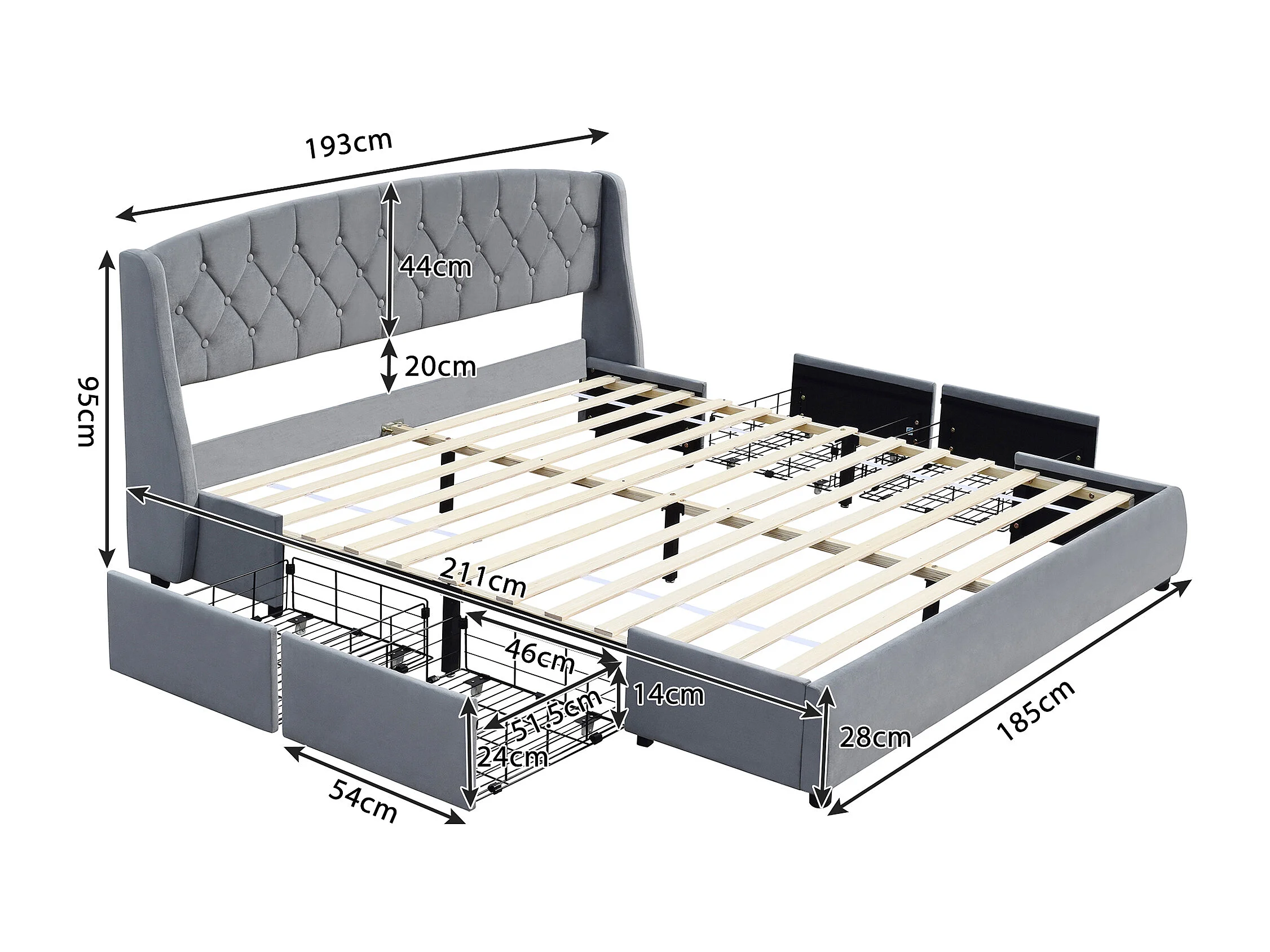Lit rembourré 180x200cm en velours - avec 4 tiroirs - Gris