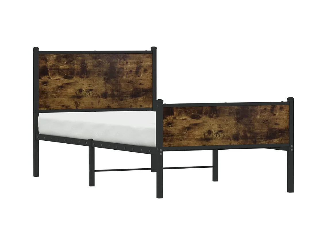 Lit adulte en métal avec tête de lit chêne fumé 90x190 cm FR105421