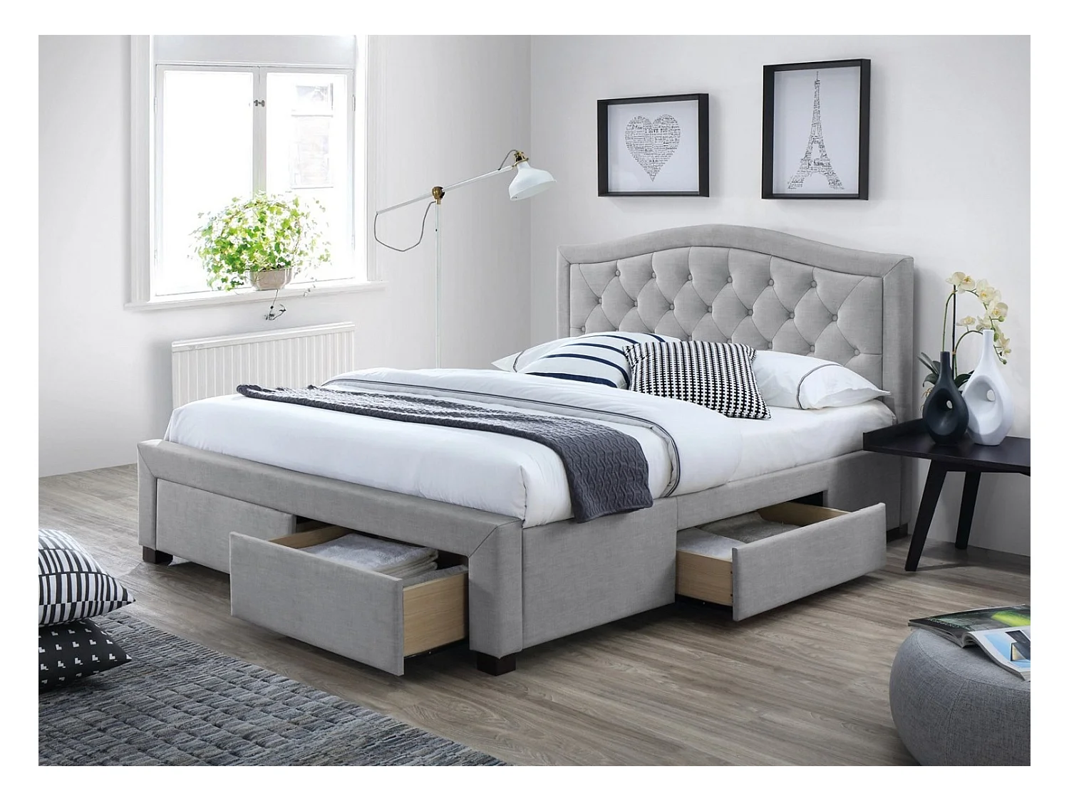 Lit adulte tapissé tissu gris clair 4 tiroirs Korina-160x200