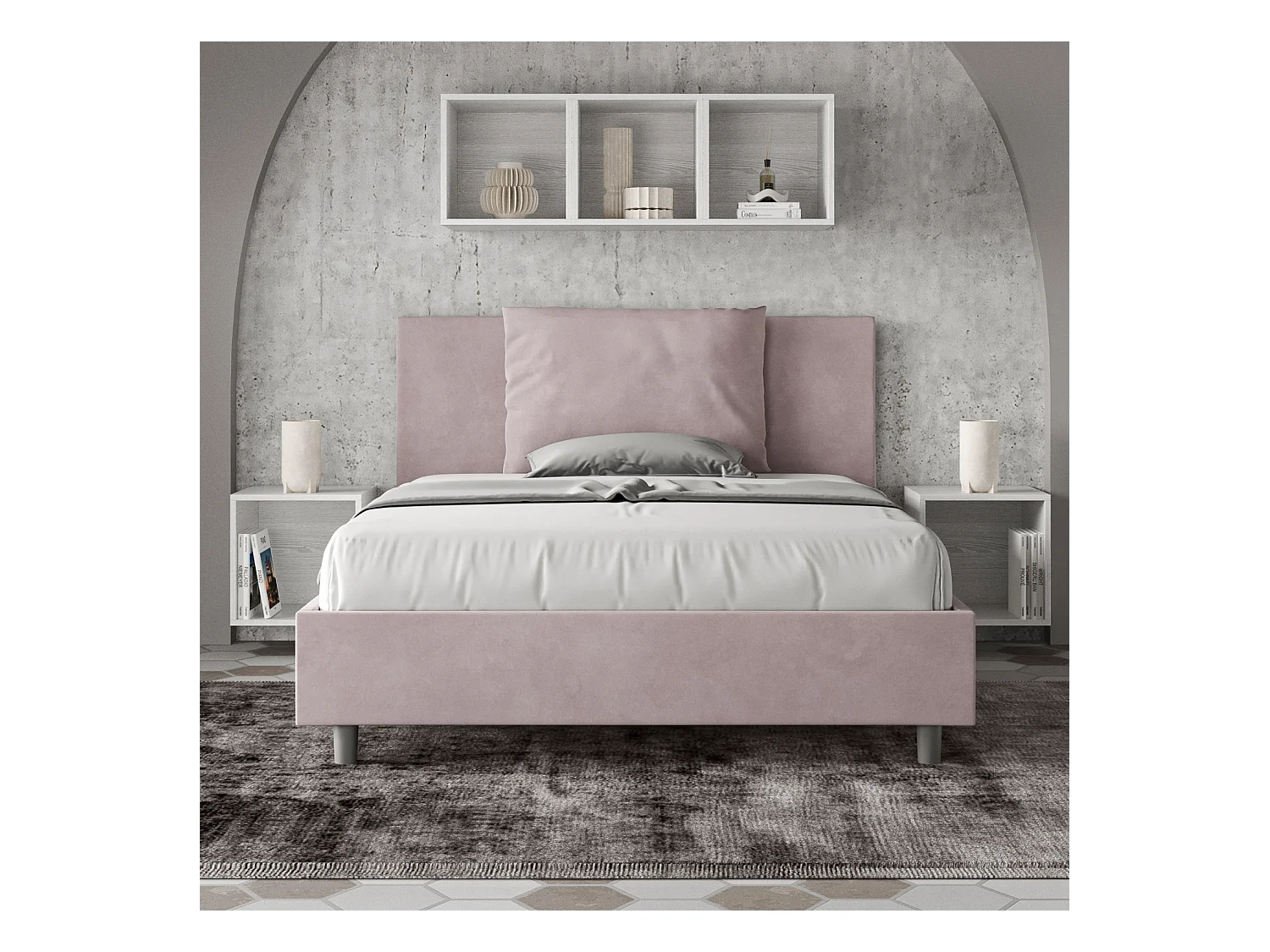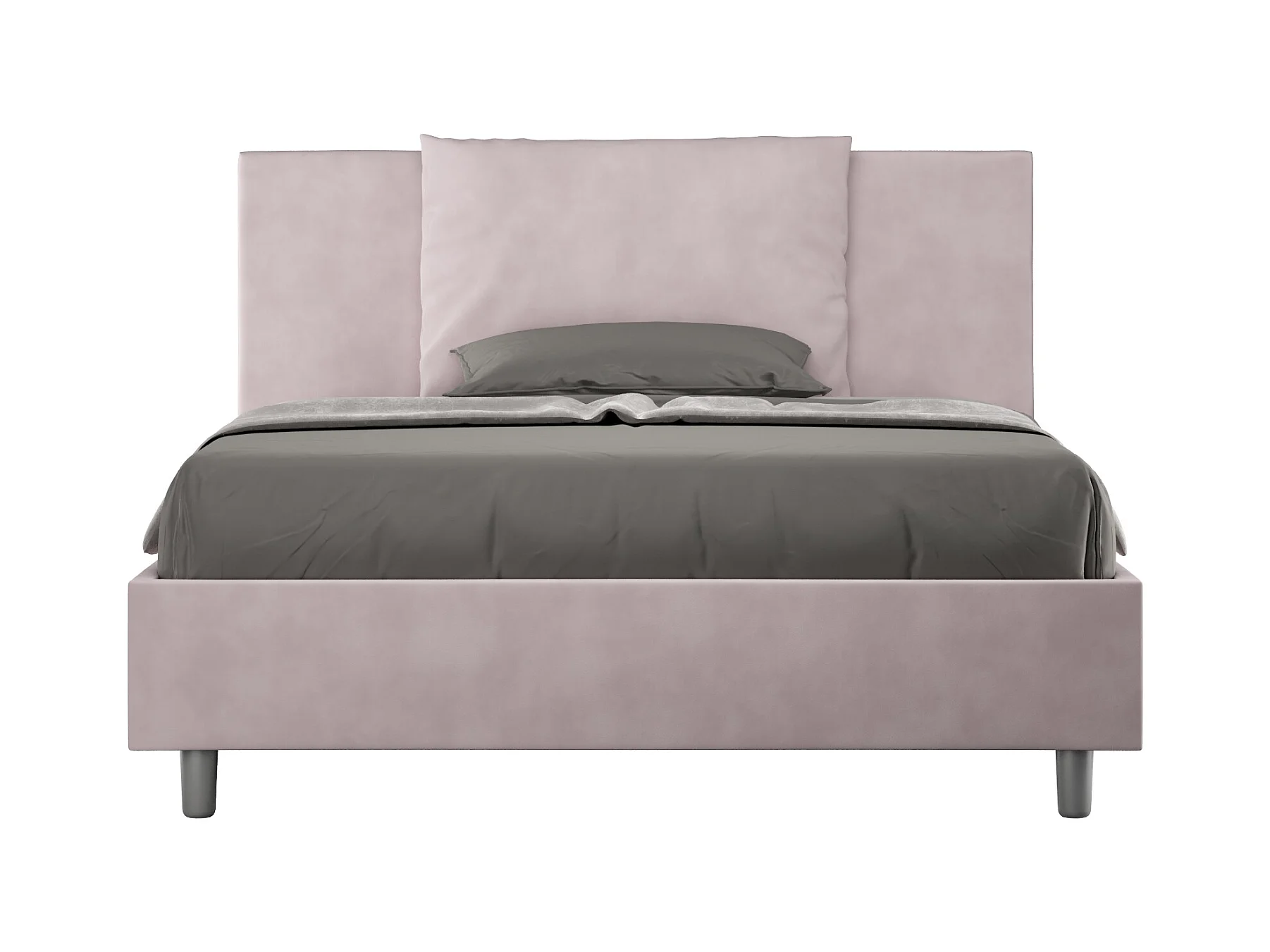 Lit double avec sommier rembourré 140x210 microfibre lilas Antea