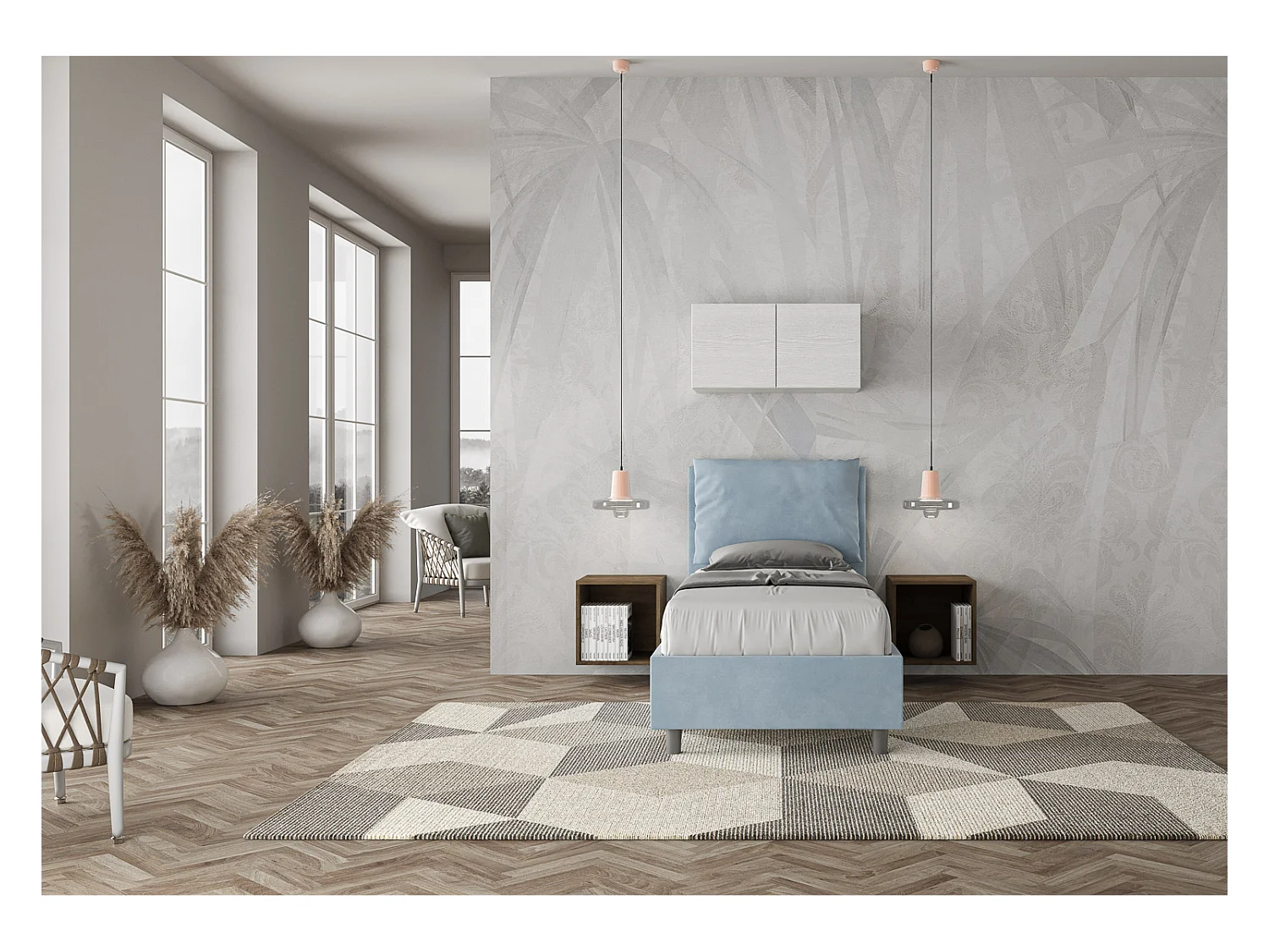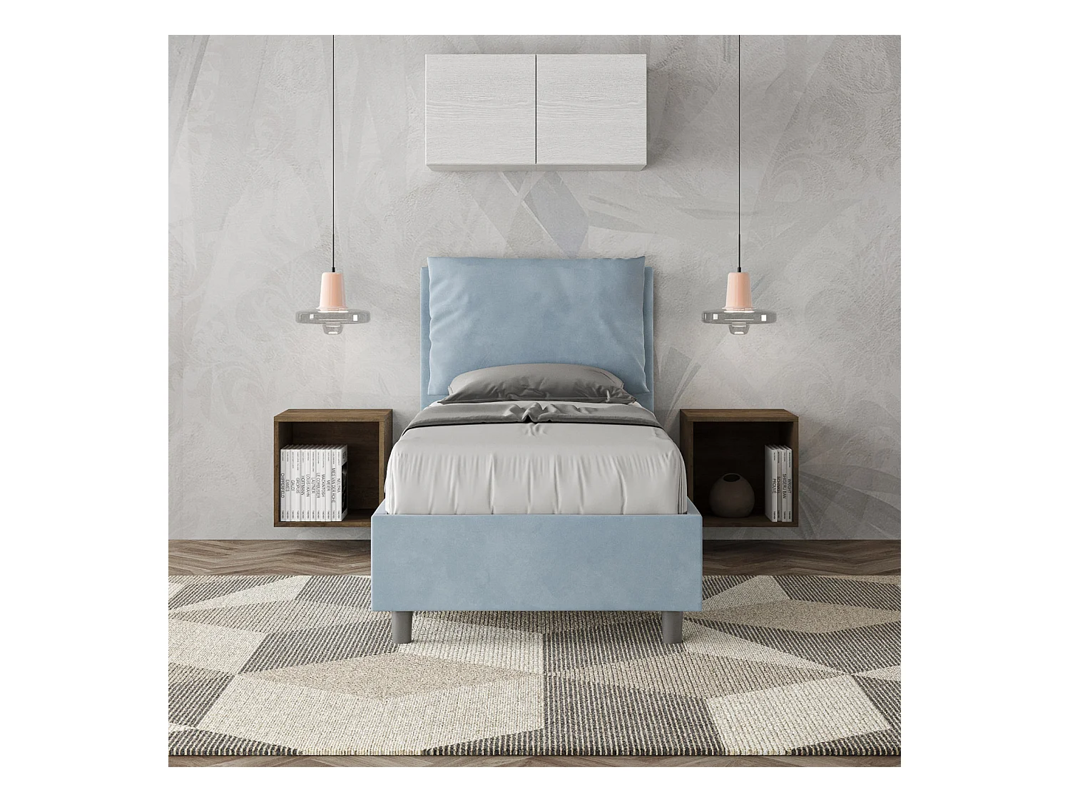 Lit Antea avec sommier rembourré 80x190 microfibre bleu clair