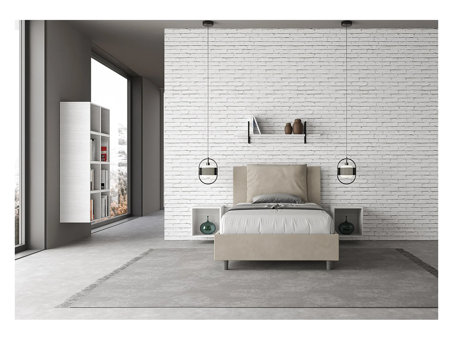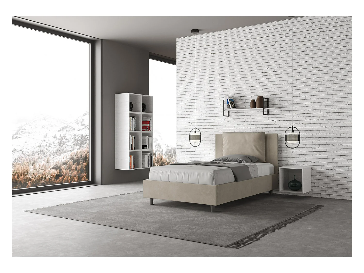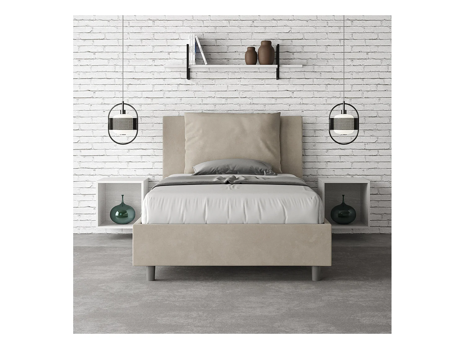 Lit 1 place et demi sans sommier rembourré 120x190 microfibre sable Antea