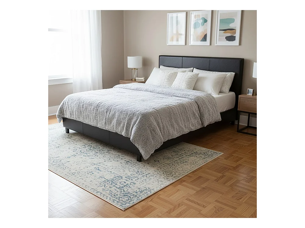Lit ATLANTA 140x190 + 1 sommier + 1 matelas CARLTON / Noir