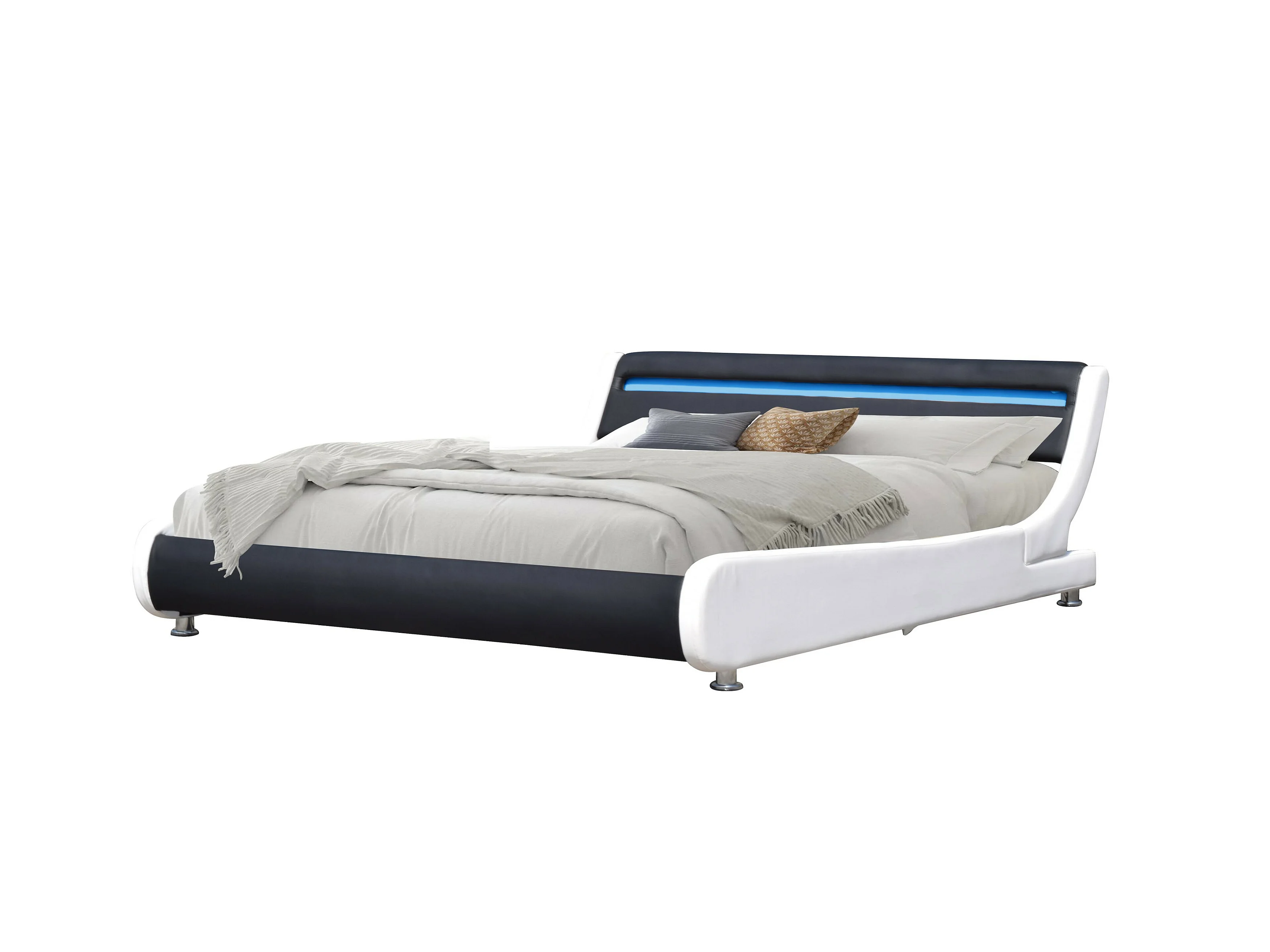 Lit ava pour matelas 90x190 - Sommier + Tête de Lit eclairage LED Incurve Couleur BLANC & NOIR
