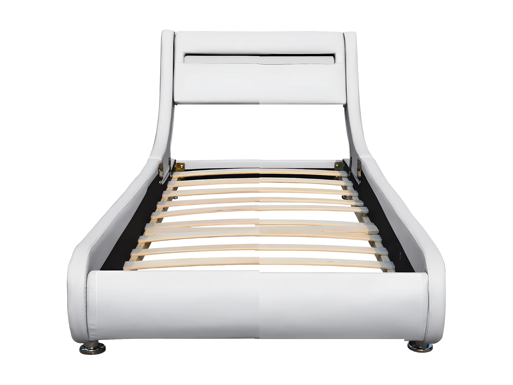 Lit ava pour matelas 90x200-Sommier+Tête de Lit eclairage LED Incurve Couleur BLANC+Pieds en 5cm pour matelas-13 Lattes