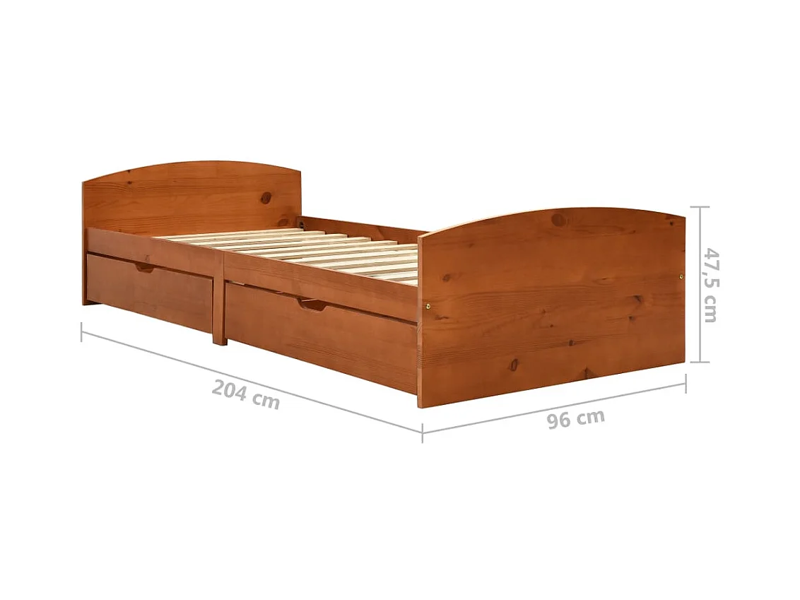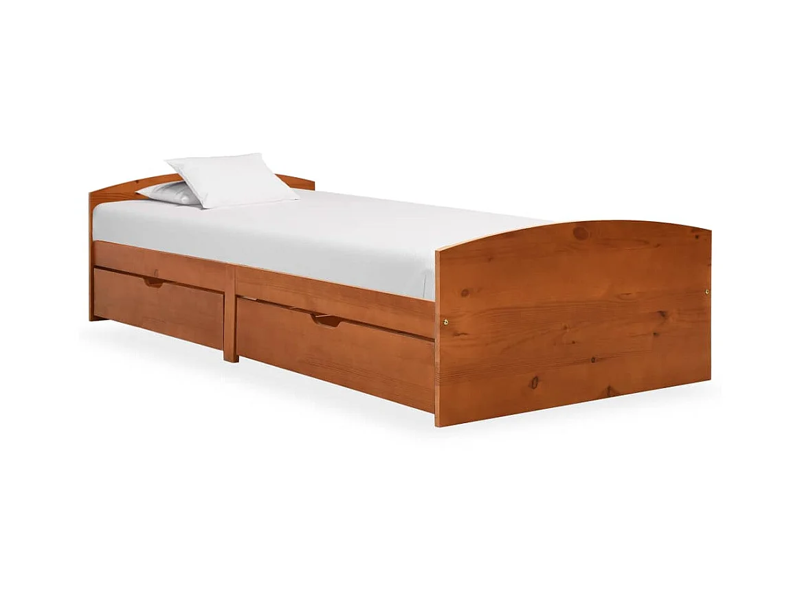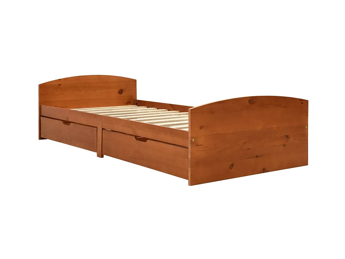 Lit avec 2 tiroirs Marron miel Bois de pin 90x200 4