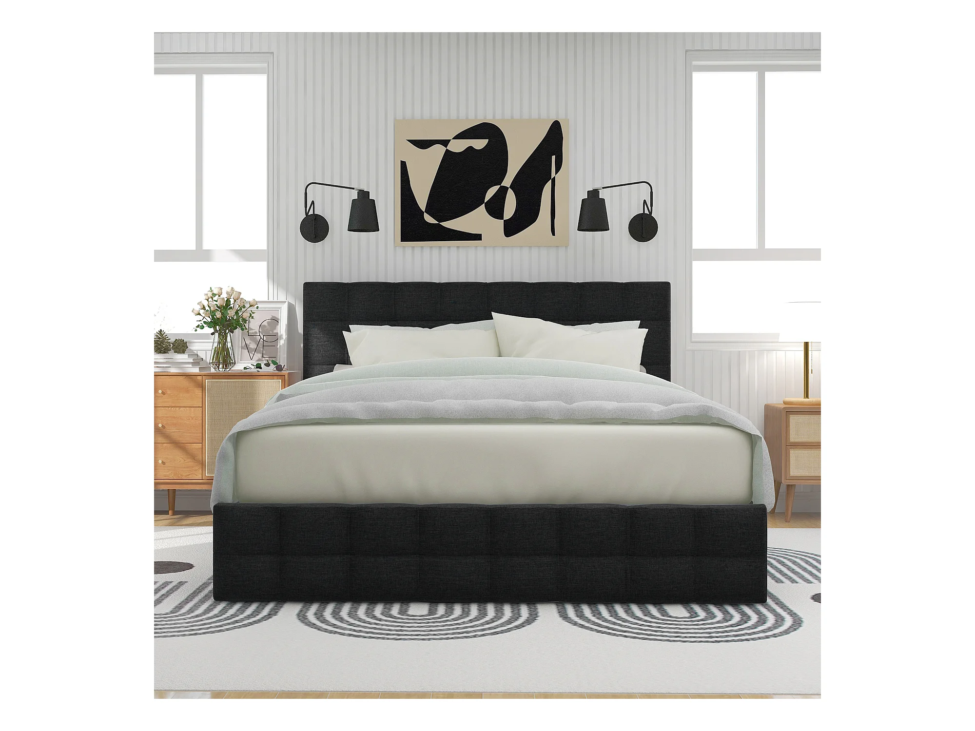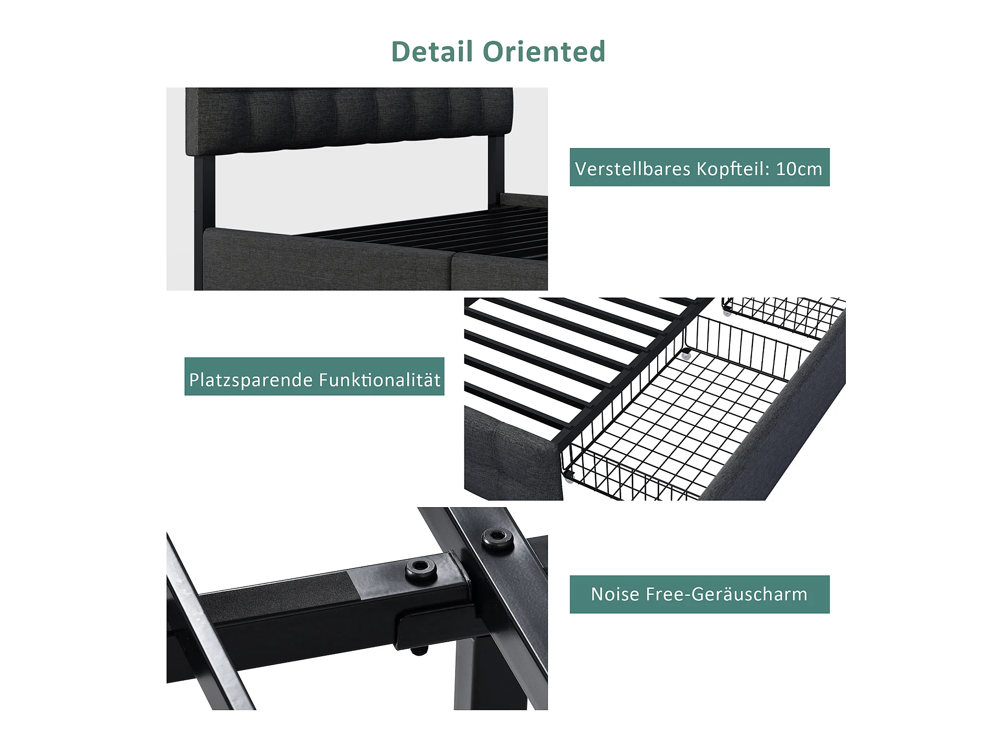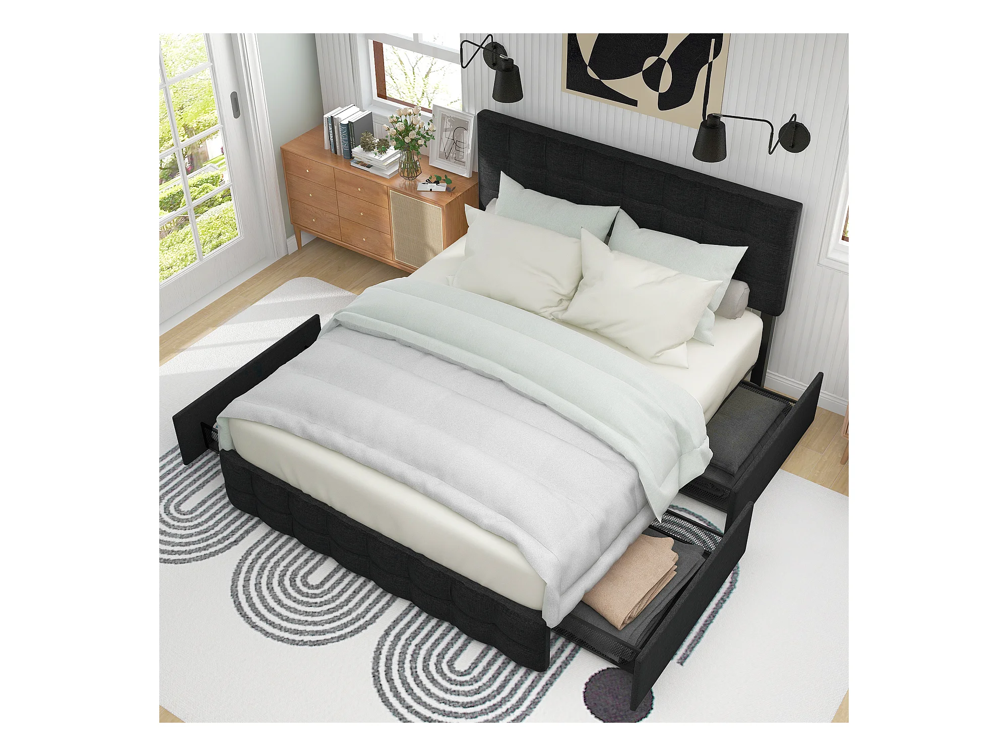 Lit avec 4 tiroirs Lit de rangement - noir 140x200 cm - Sweiko