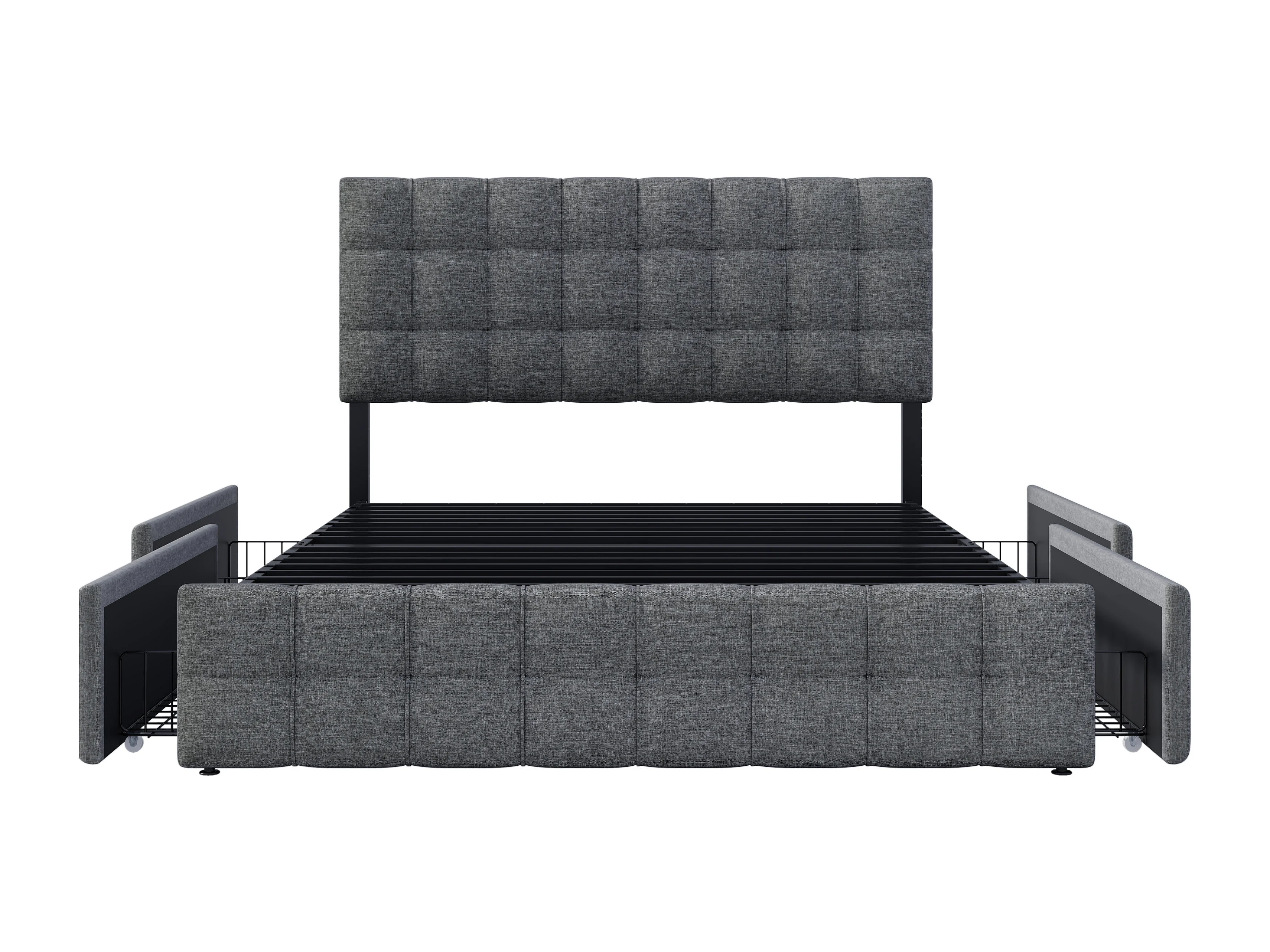 Lit avec avec 4 tiroirs Lit de rangement - gris 140x200 cm (sans matelas) - Sweiko
