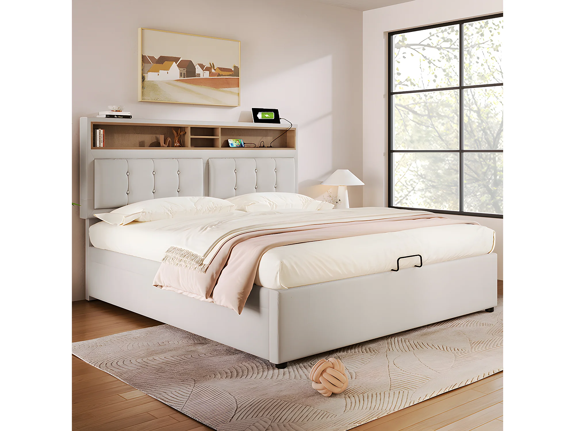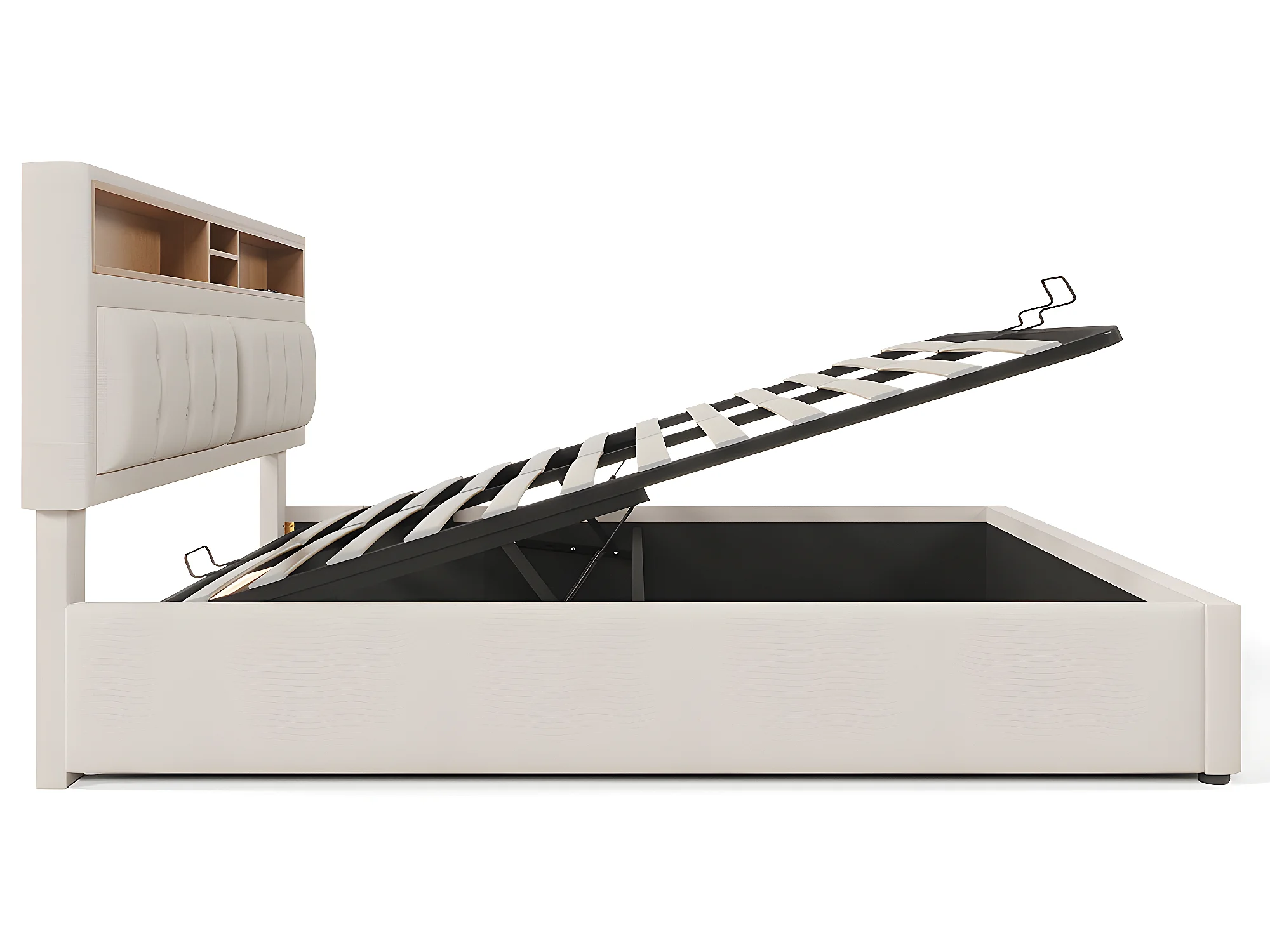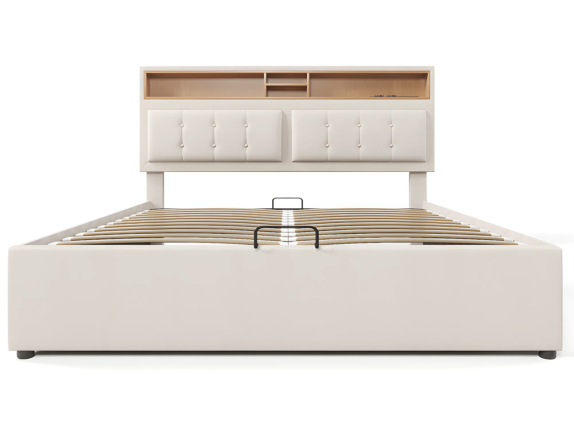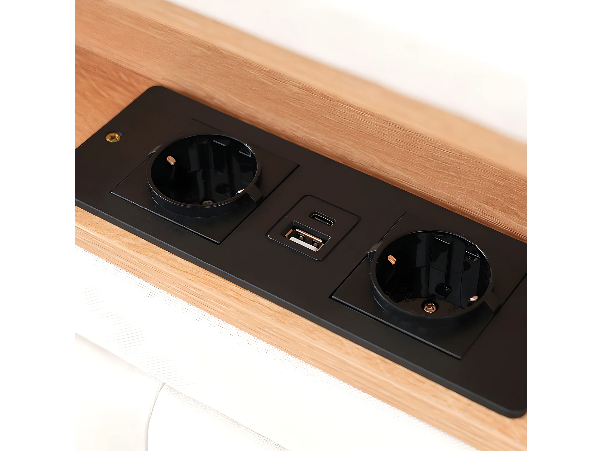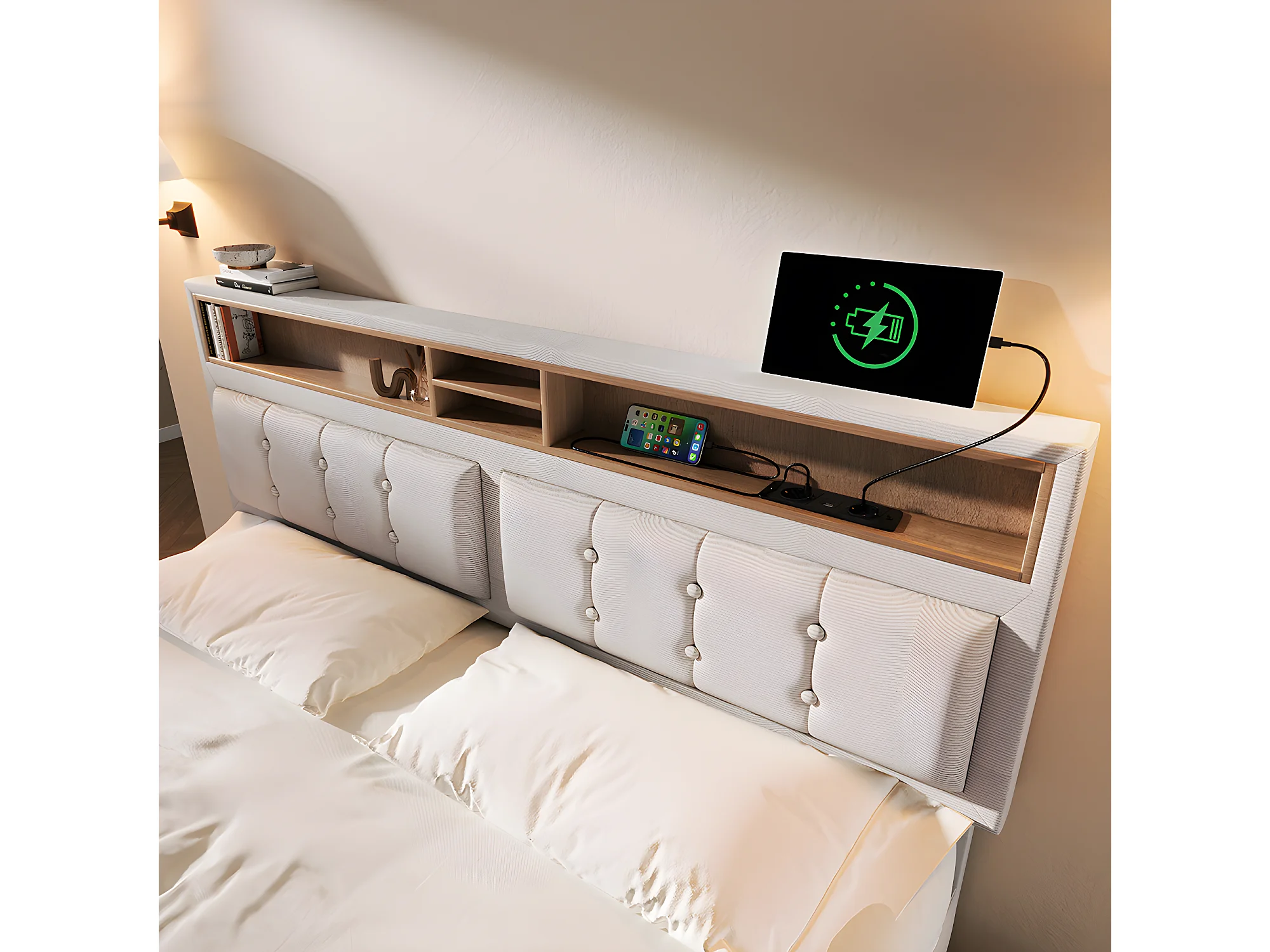 Lit avec chevets - 160 x 200 cm - avec Prise USB - Beige - Sweiko