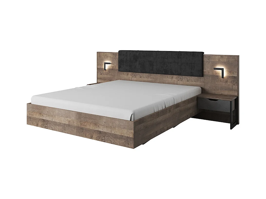 Lit avec chevets 160 x 200 cm - Avec LEDs - Coloris : Naturel et anthracite - LAONILE