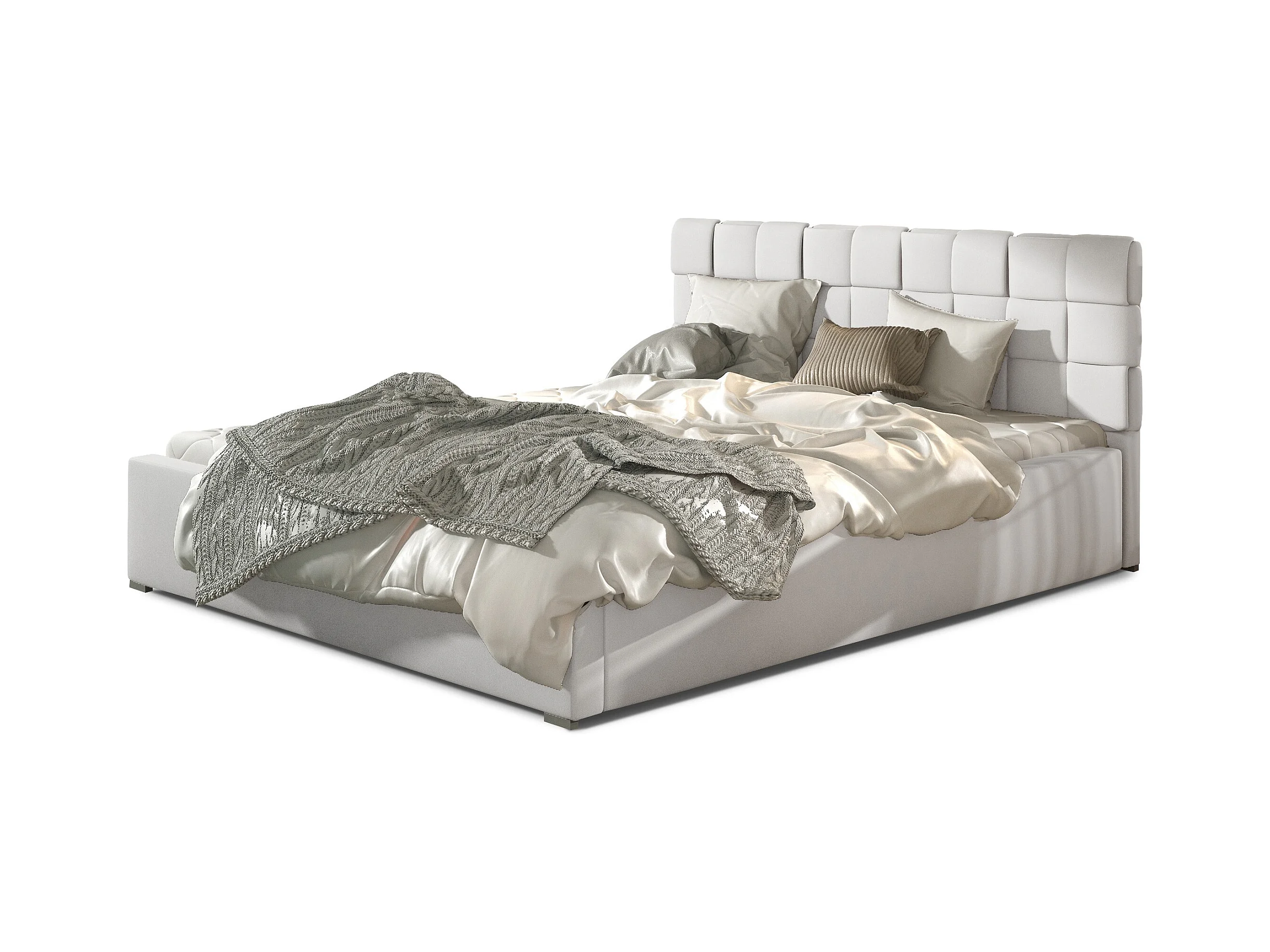 Lit avec coffre de rangement 160x200 capitonné simili cuir blanc Kandy