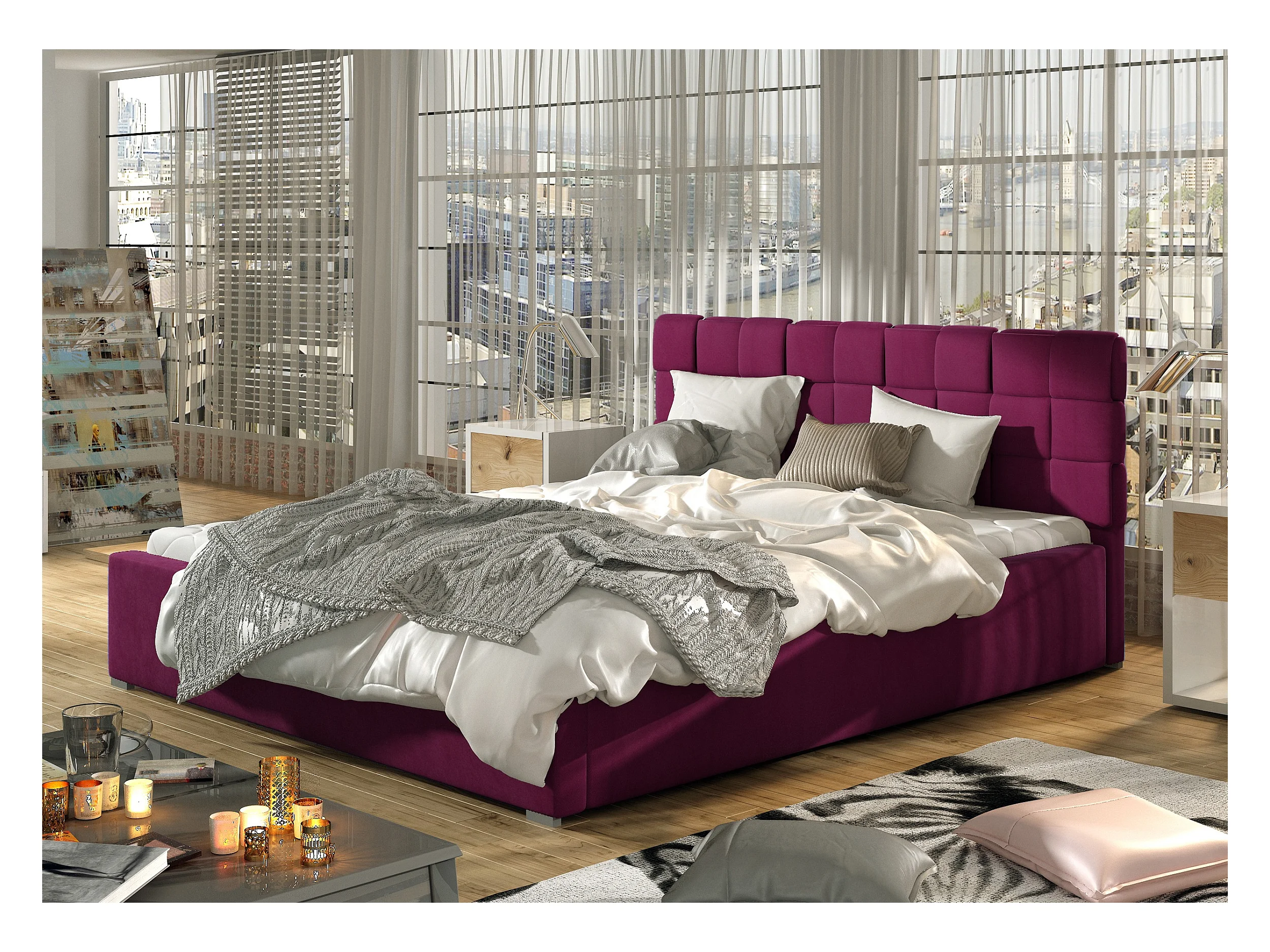 Lit avec coffre de rangement 180x200 capitonné velours bordeaux Kandy