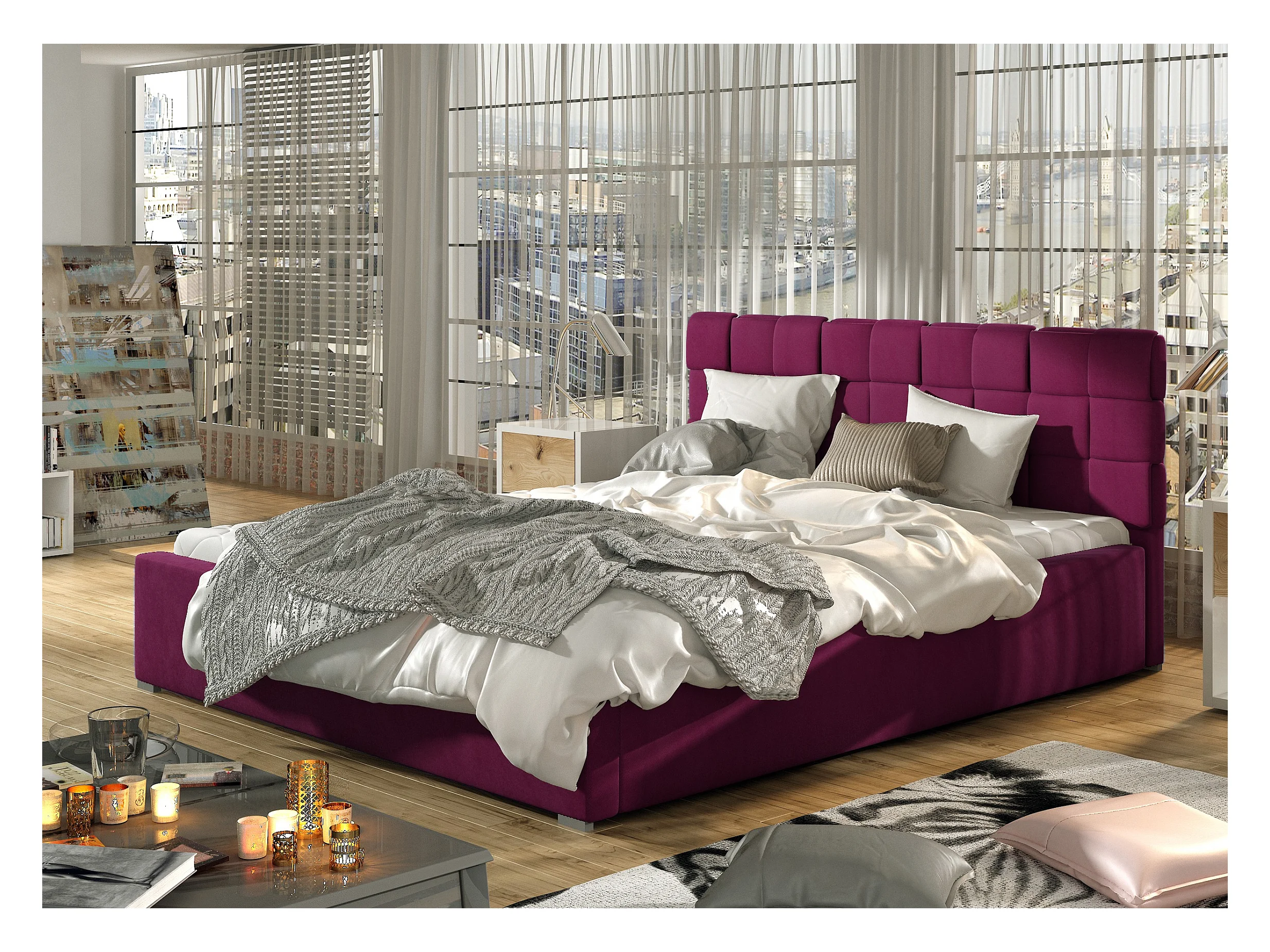 Lit avec coffre de rangement 200x200 capitonné velours bordeaux Kandy