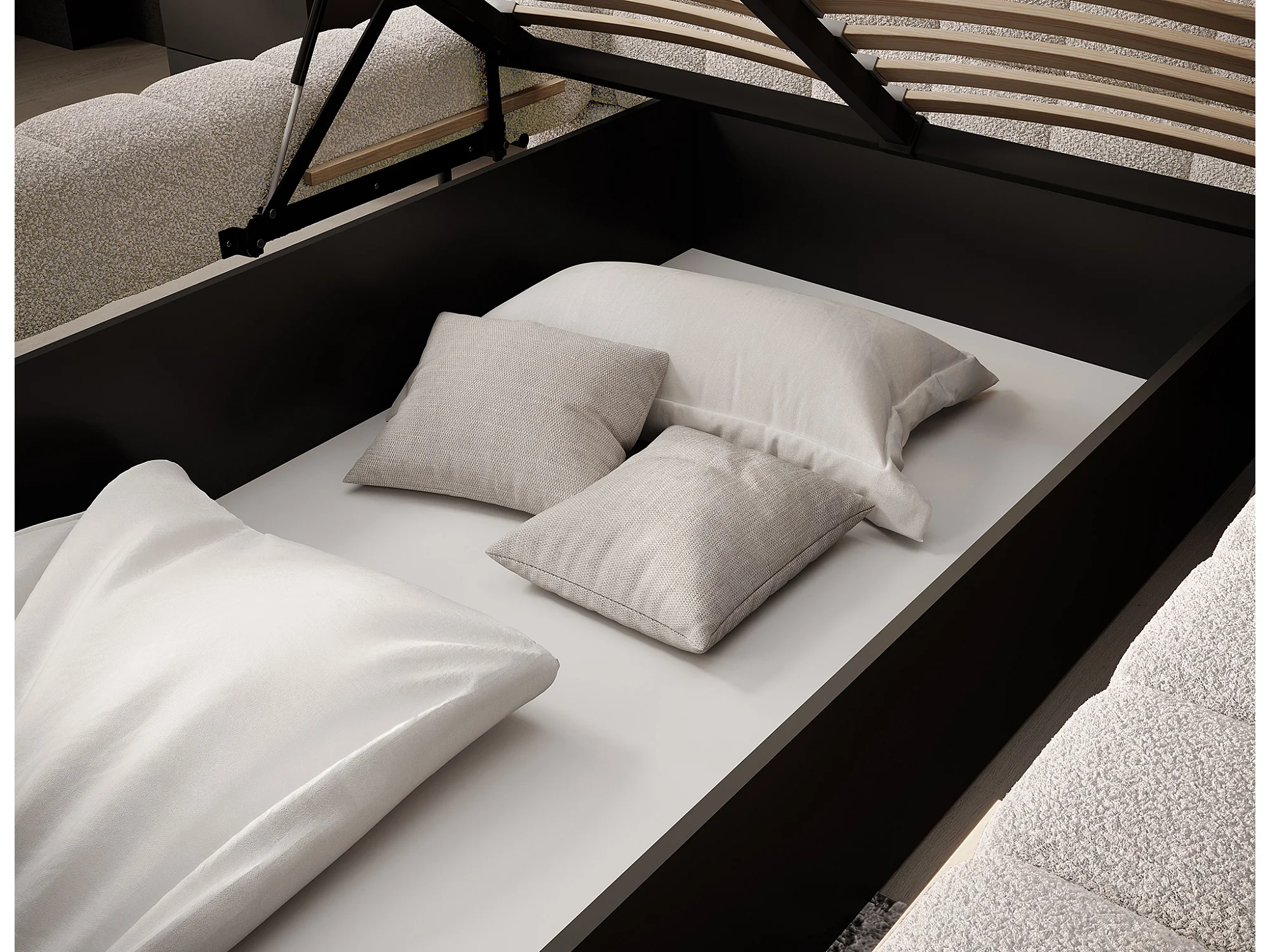 Lit avec coffre de rangement Kopa prestige – Revêtement tissu capitonné-Beige clair-160x200