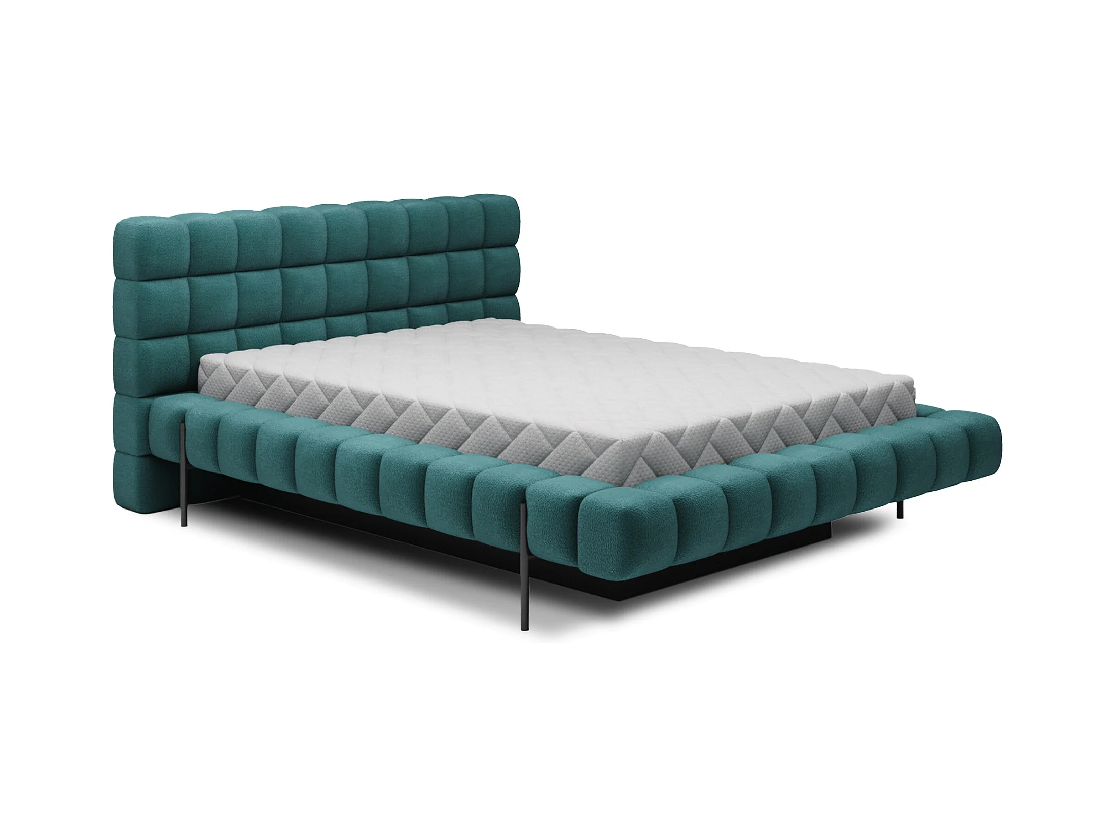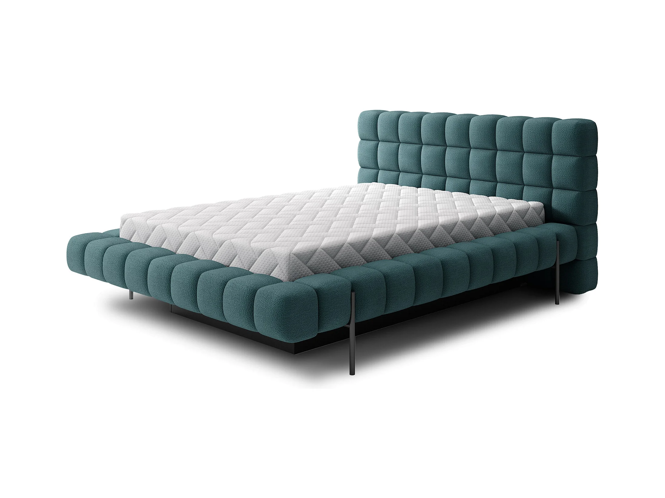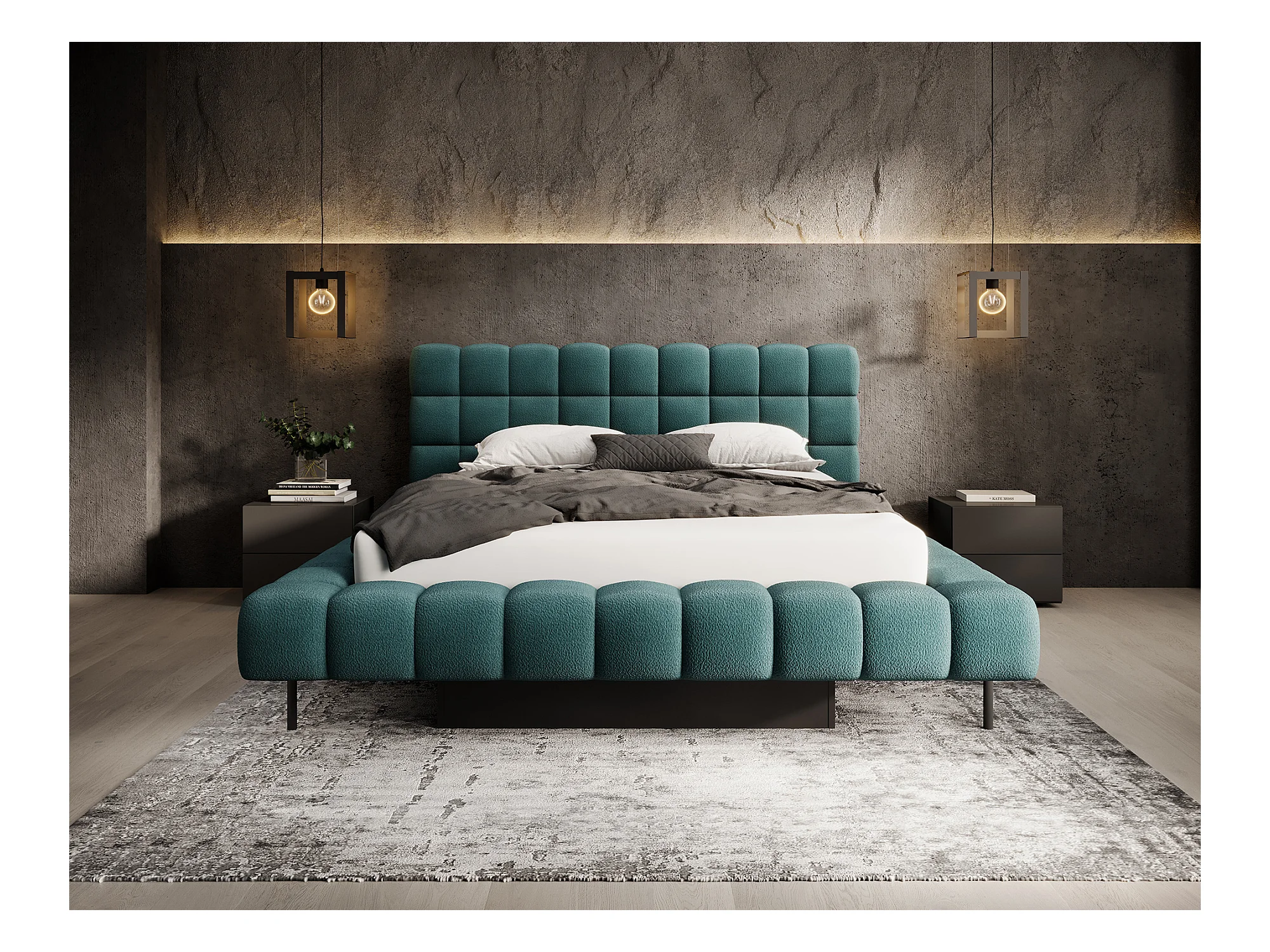 Lit avec coffre de rangement Kopa prestige – Revêtement tissu capitonné-Vert emeraude-140x200
