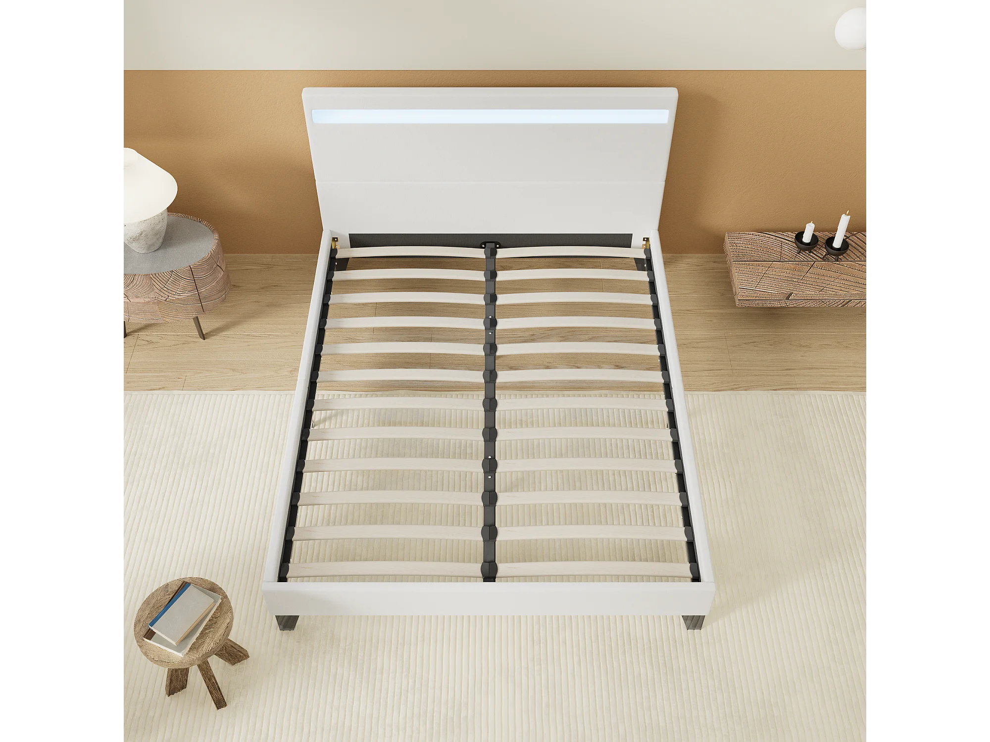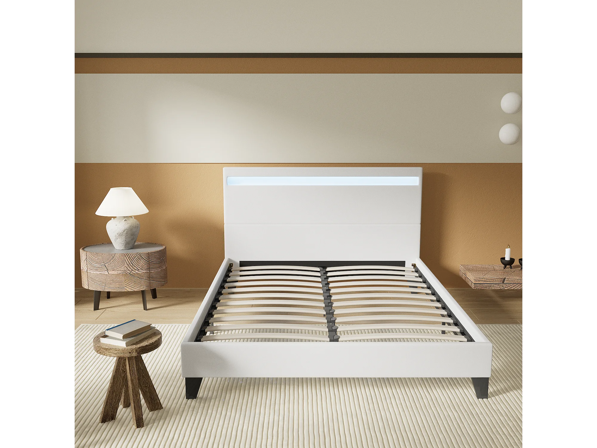 Lit Avec Éclairage LED Simili Blanc 140x190 Cm