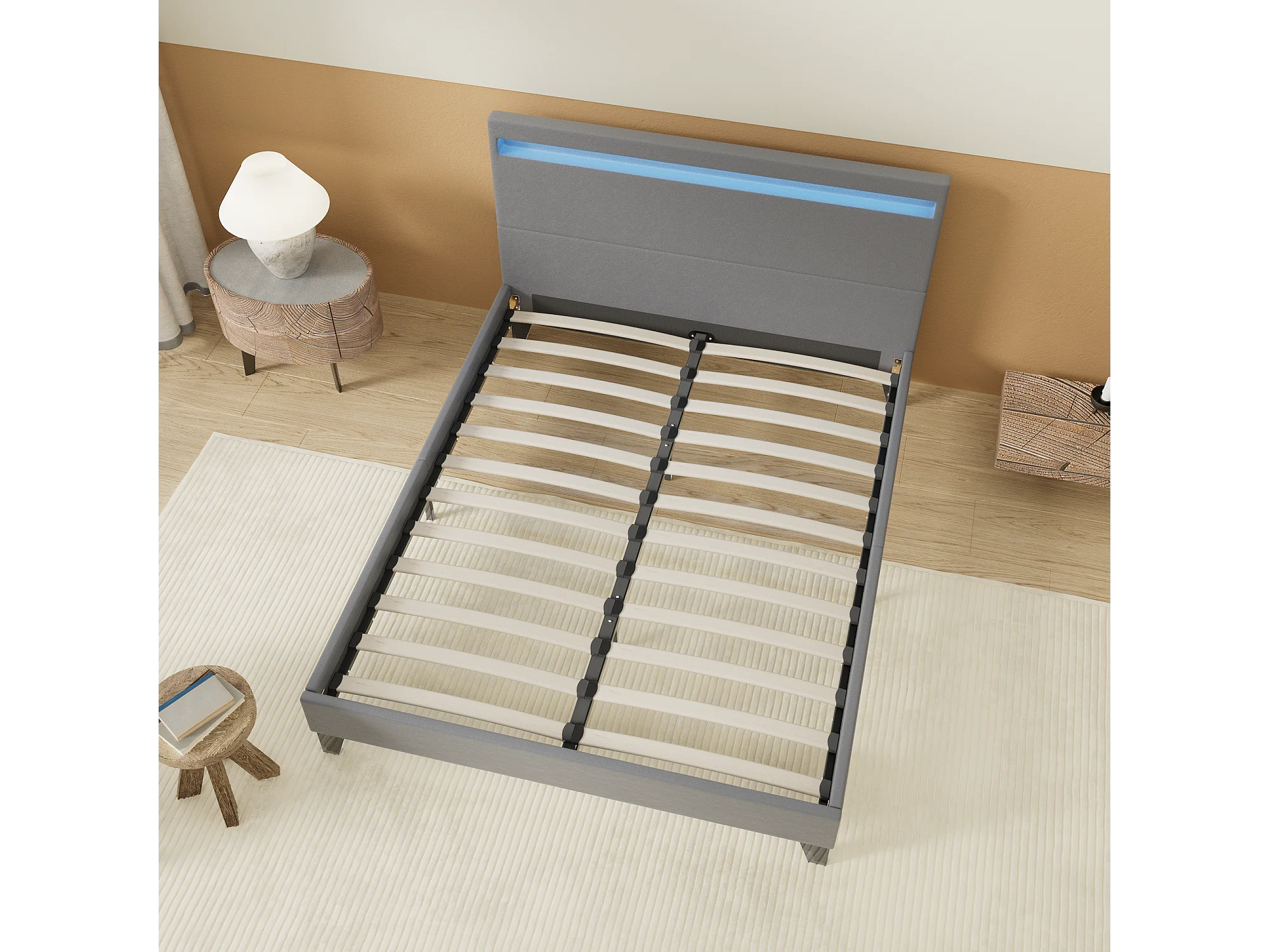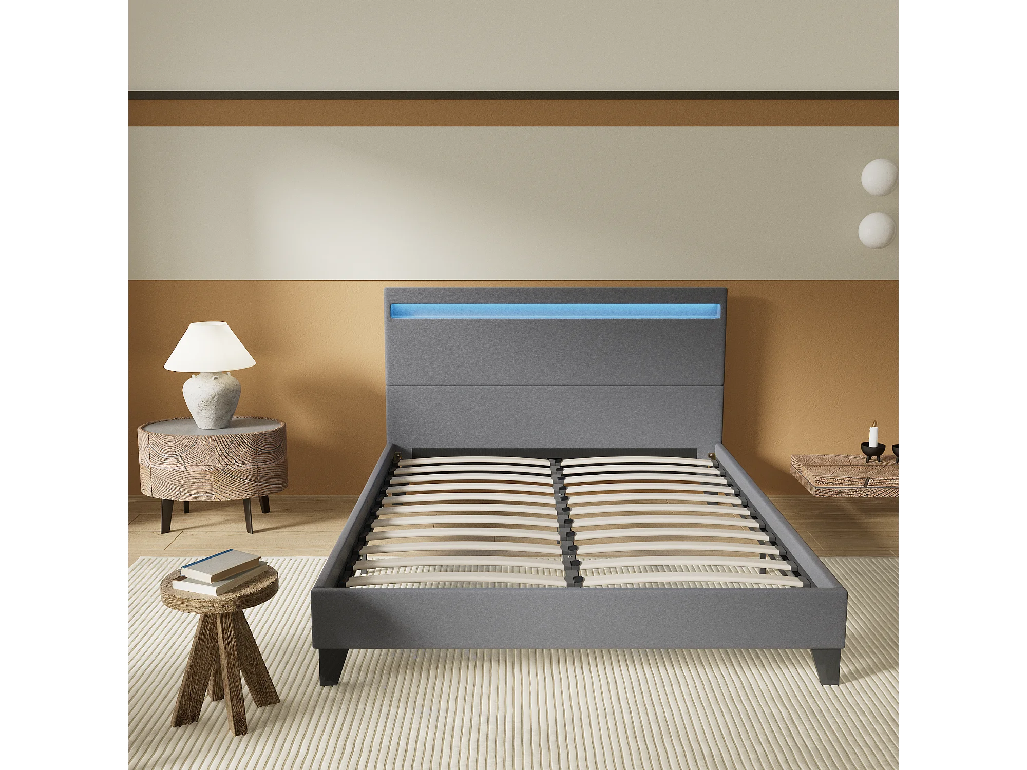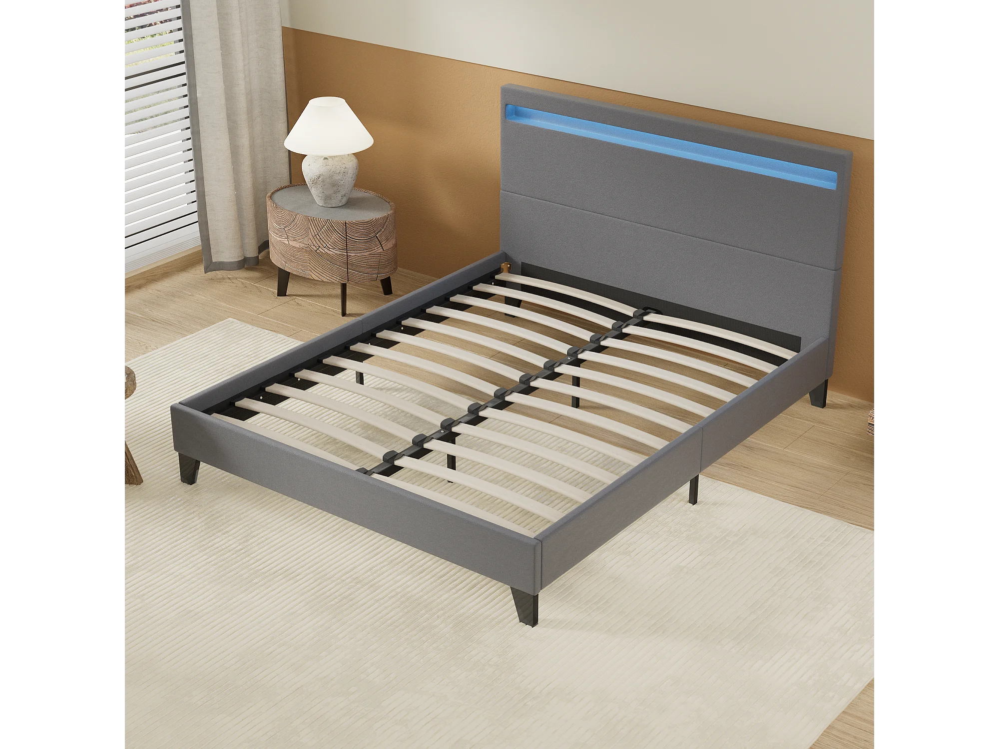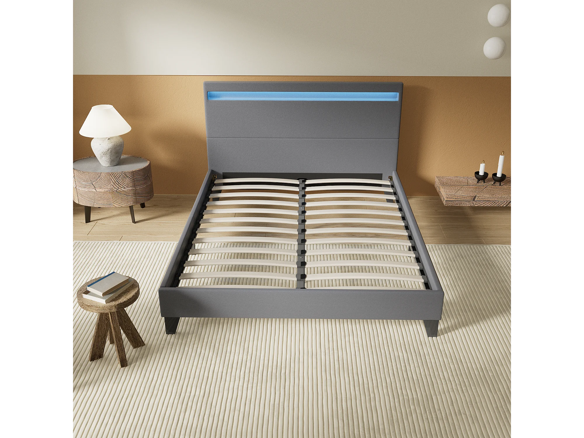 Lit 120x190cm avec tête de lit à éclairage LED gris