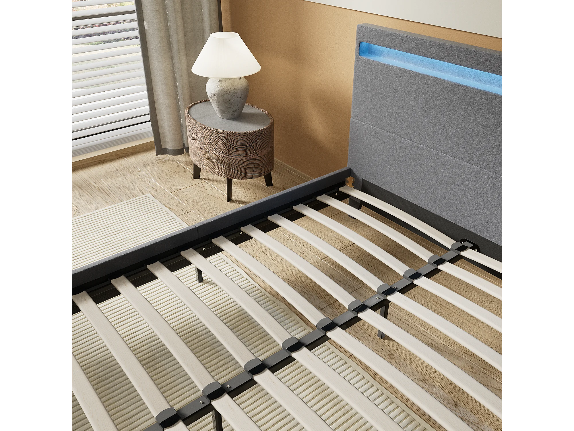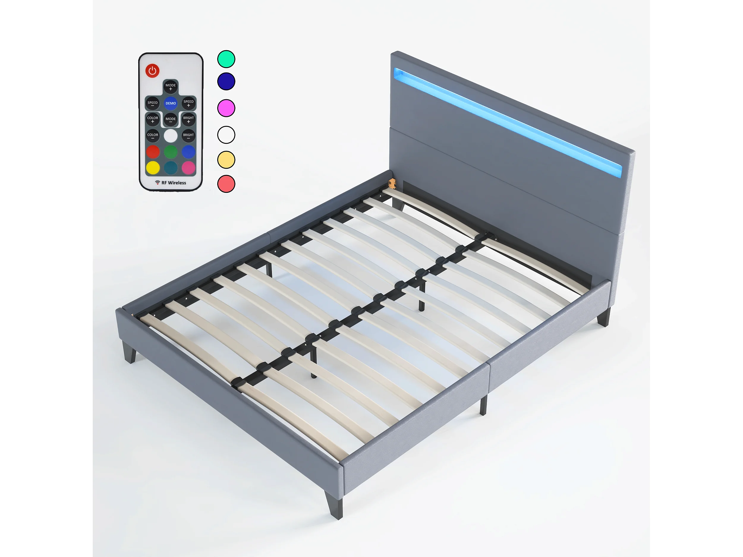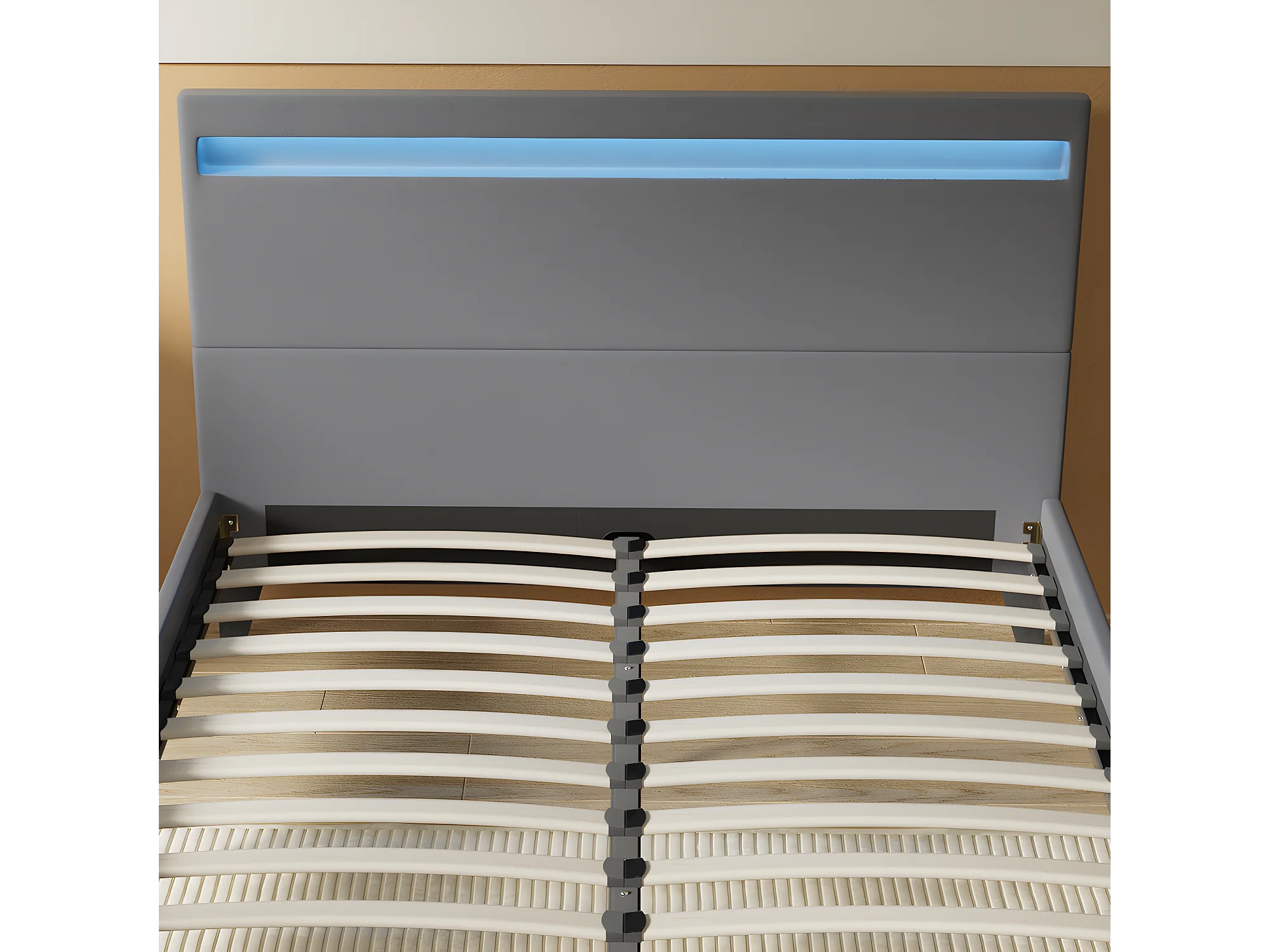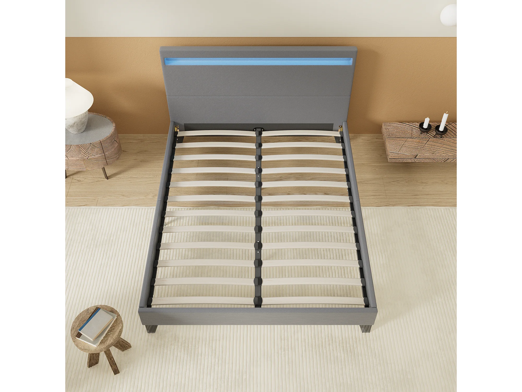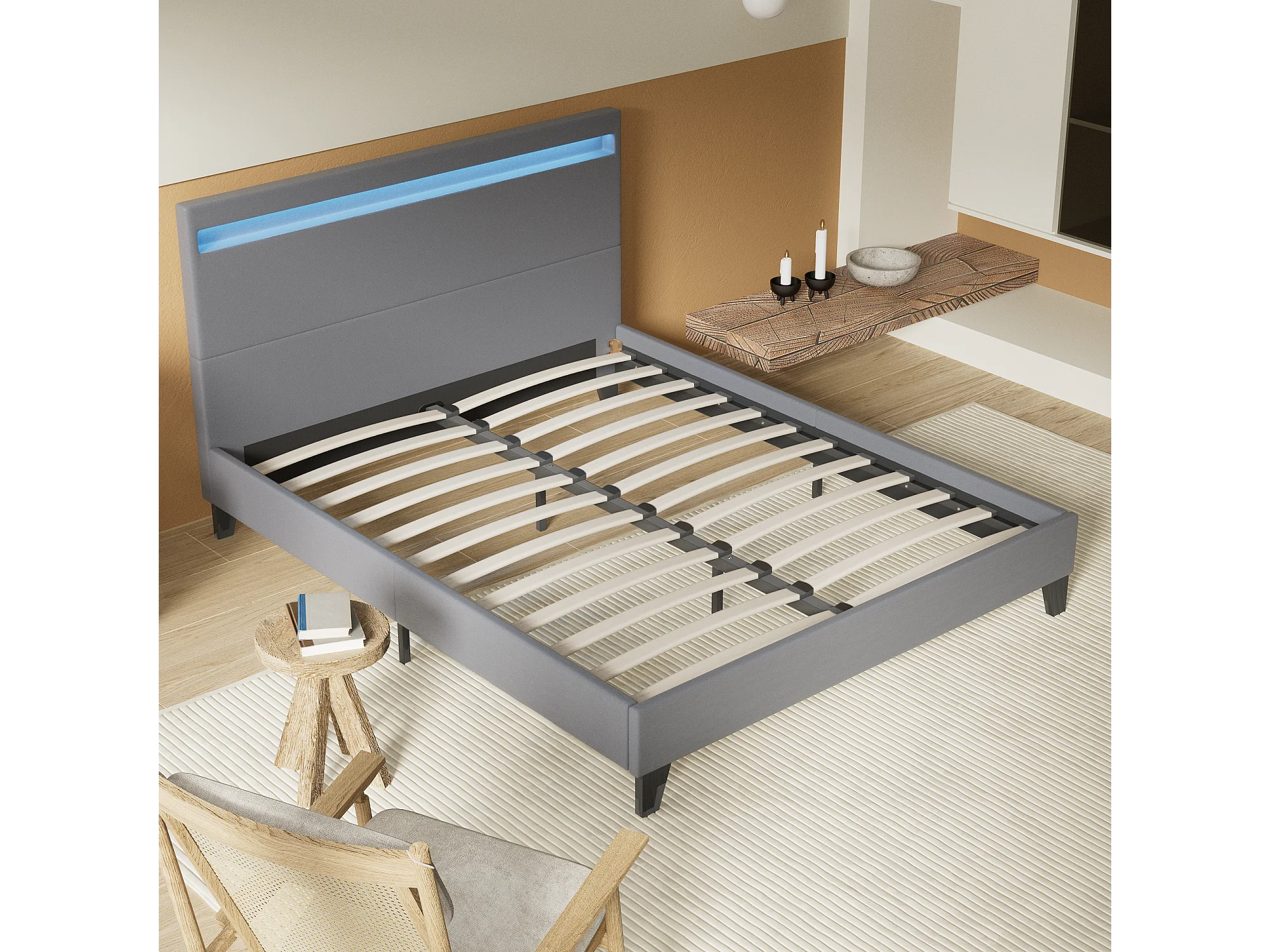 Lit 120x190cm avec tête de lit à éclairage LED gris
