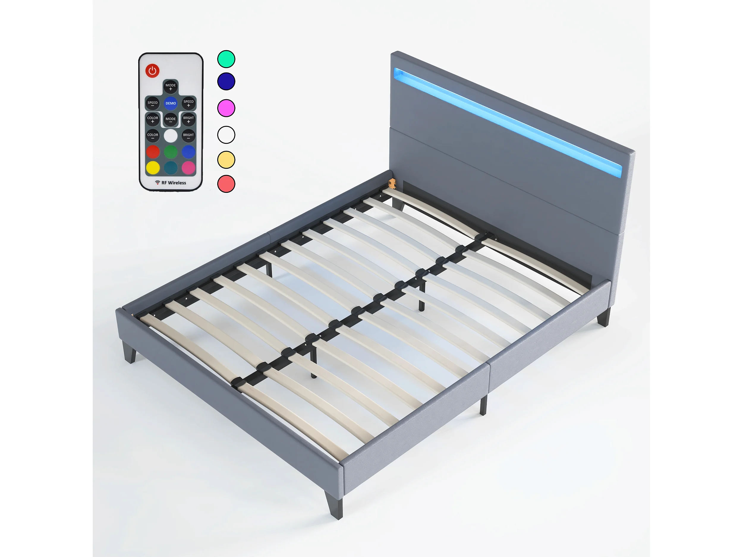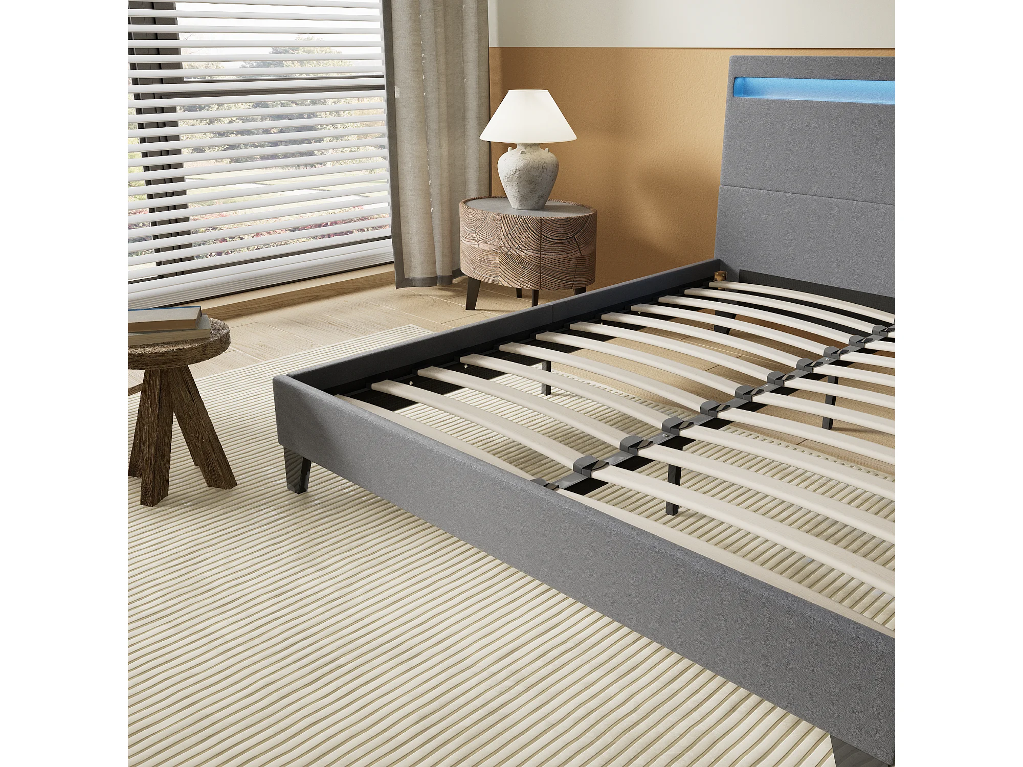 Lit 140x200cm avec tête de lit à éclairage LED gris
