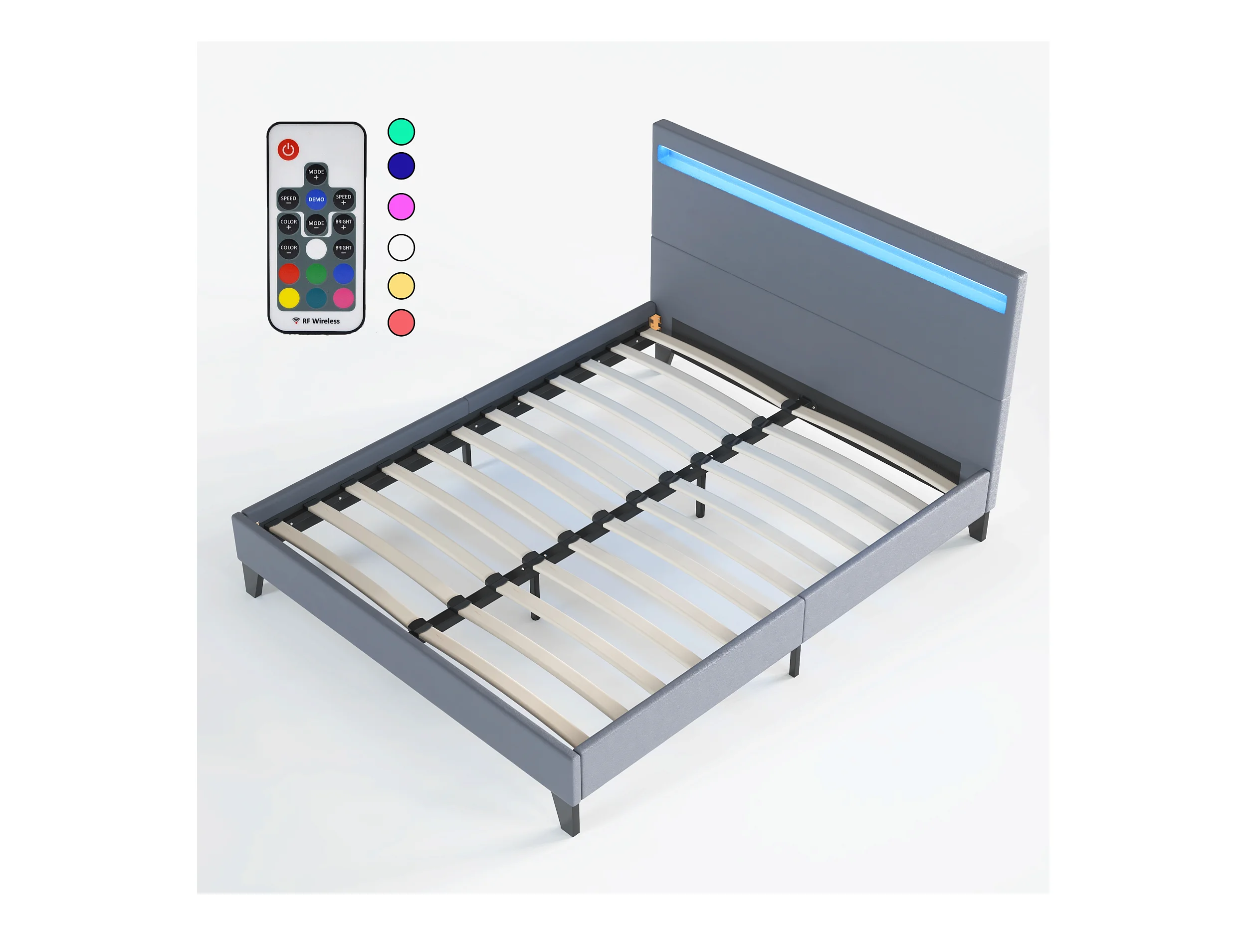 Lit 160x200cm avec tête de lit à éclairage LED gris