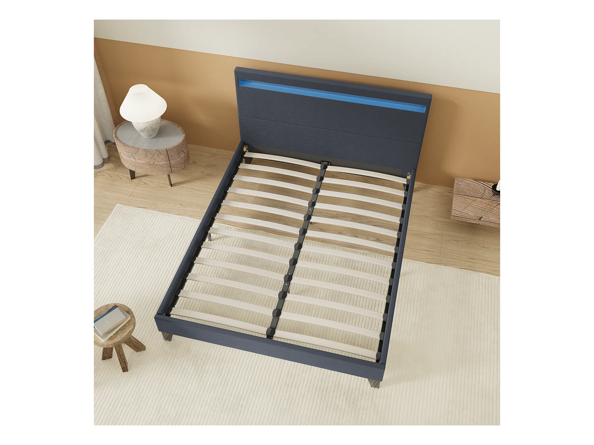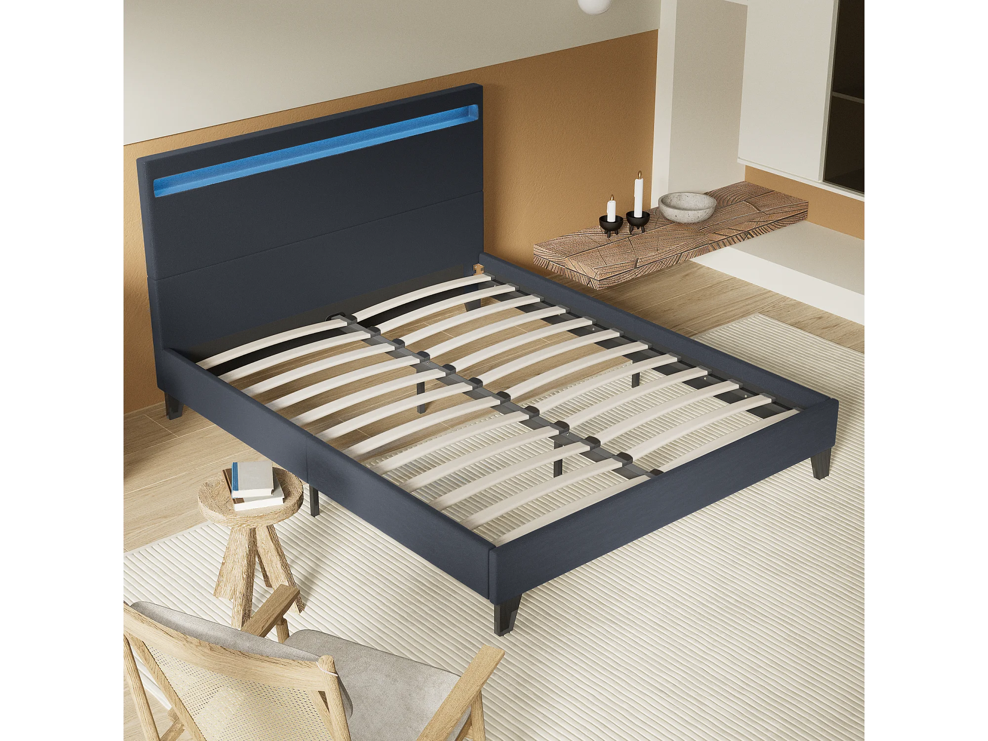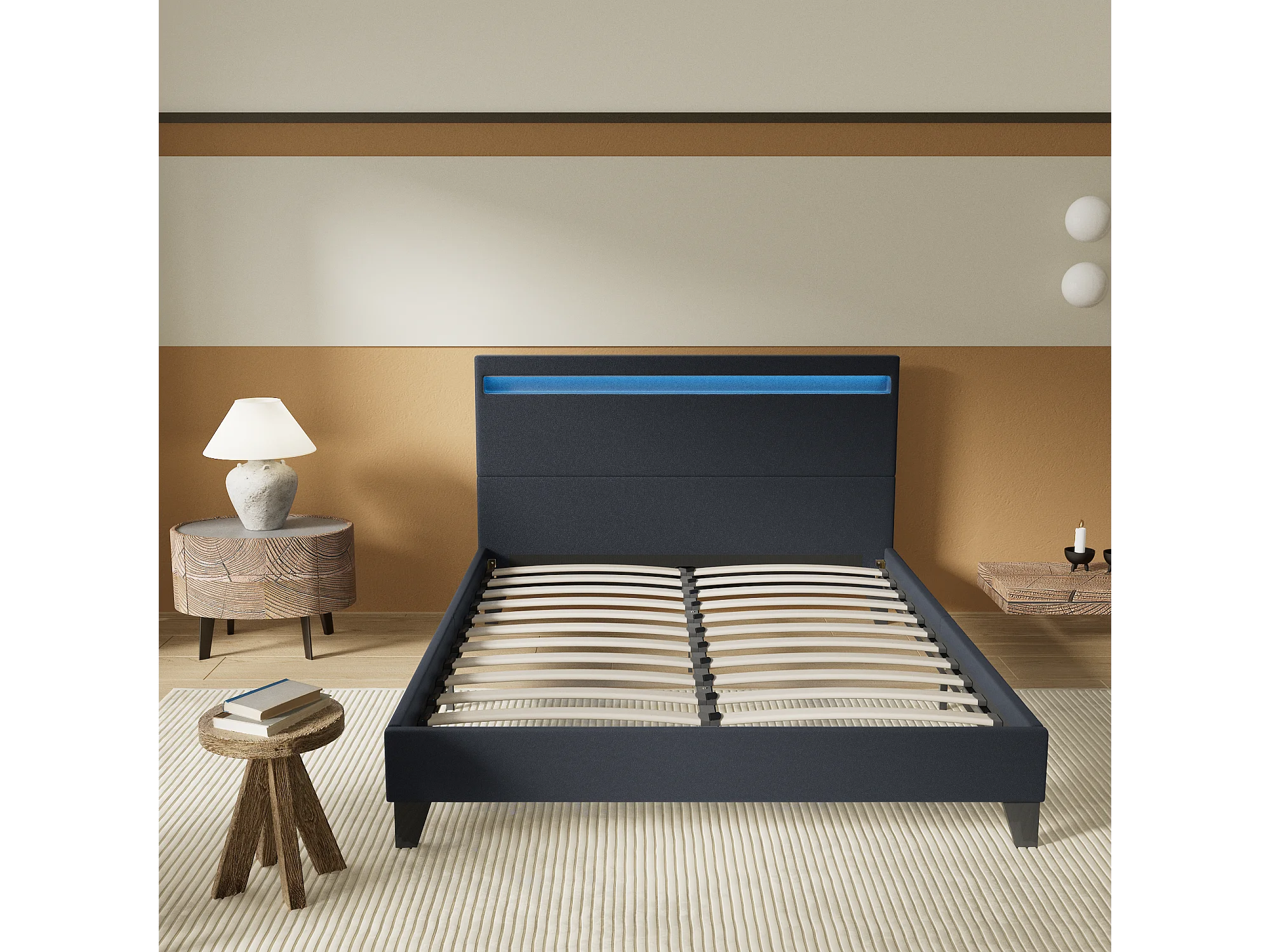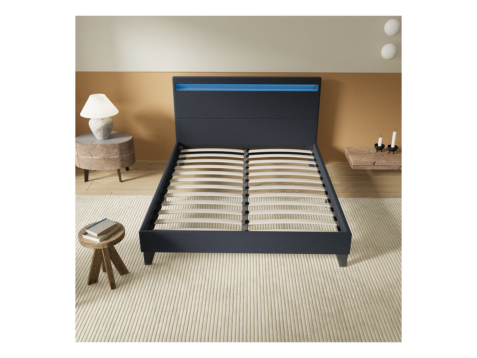 Lit 140x190cm avec tête de lit à éclairage LED noir