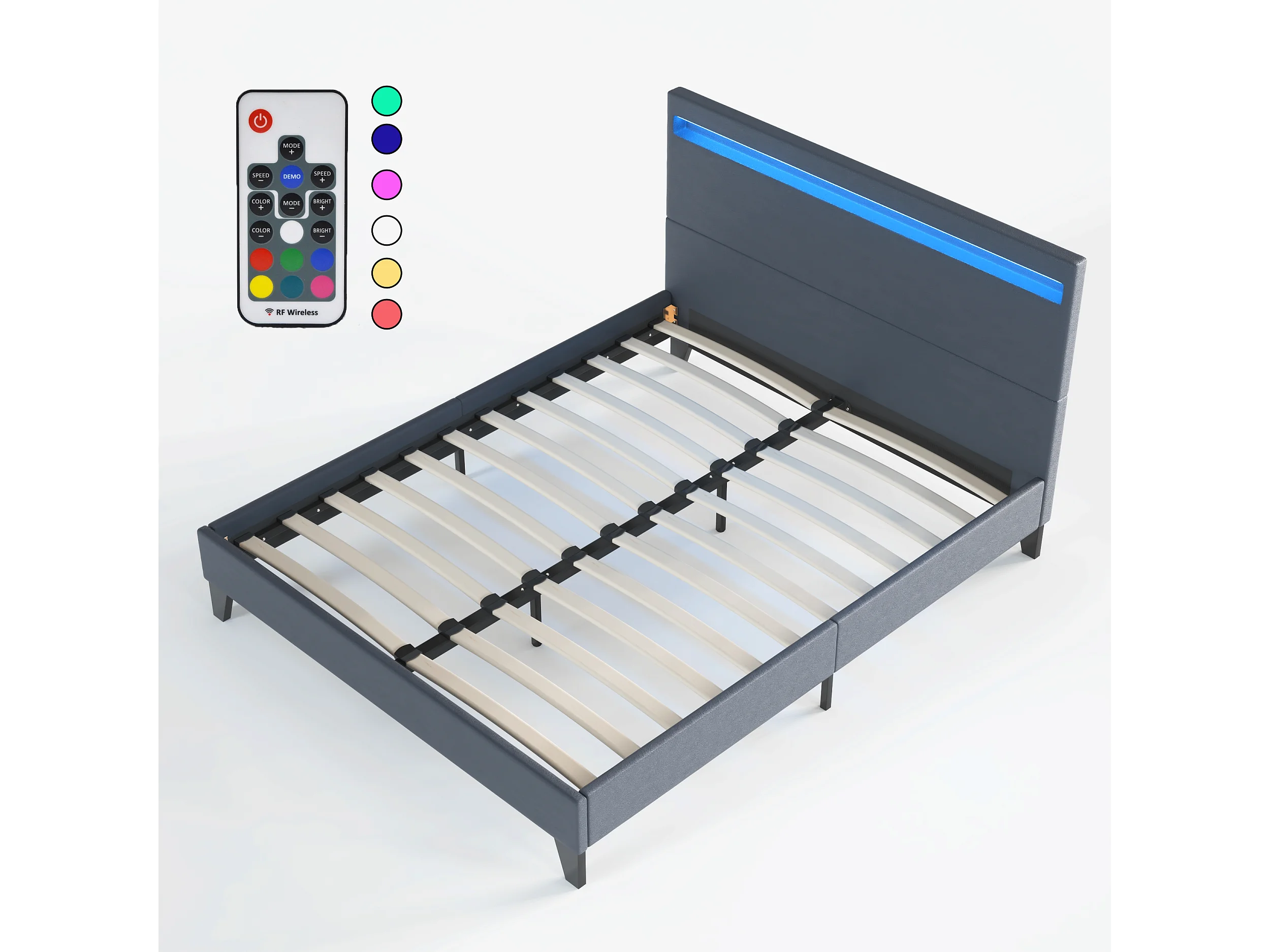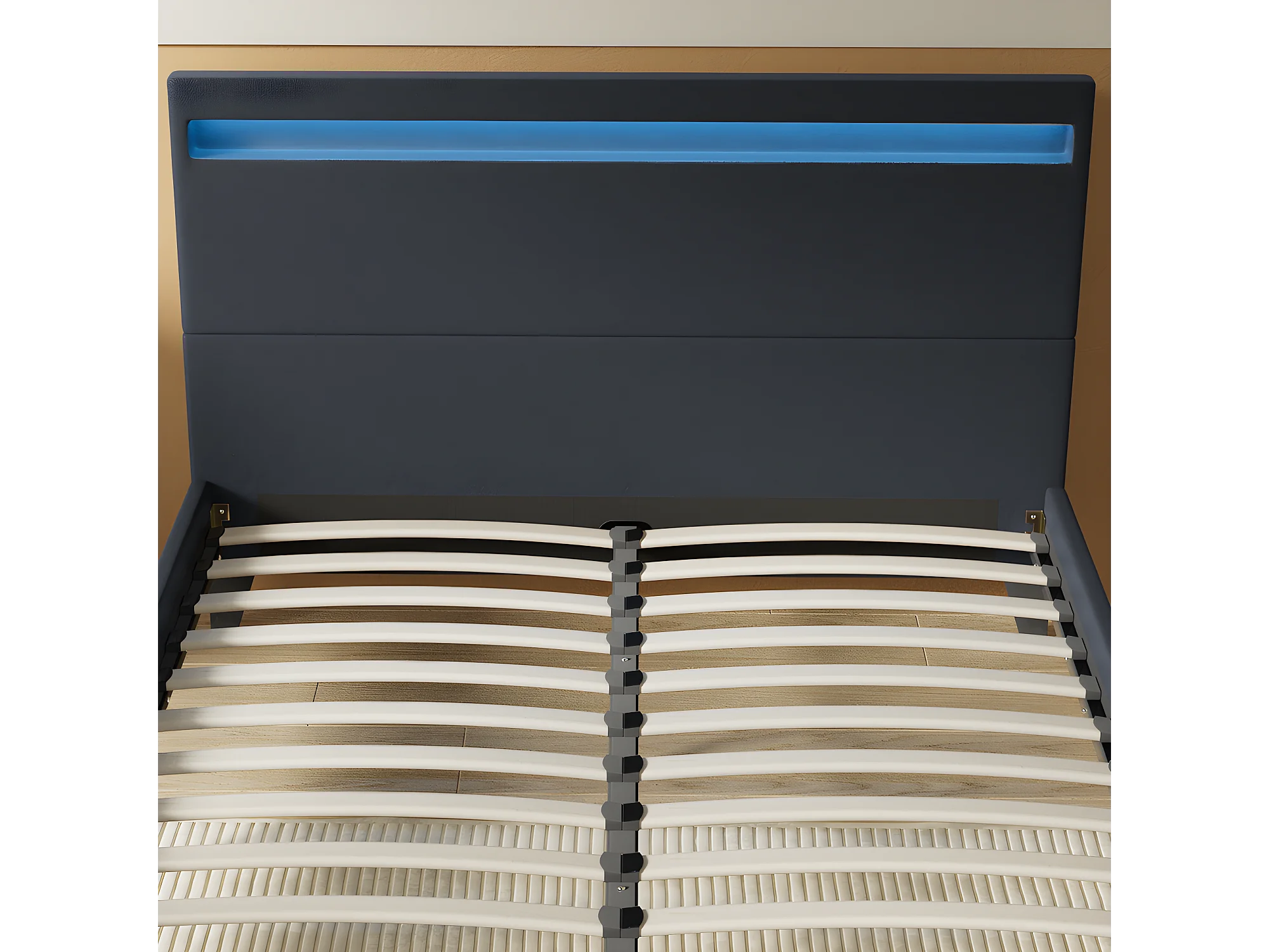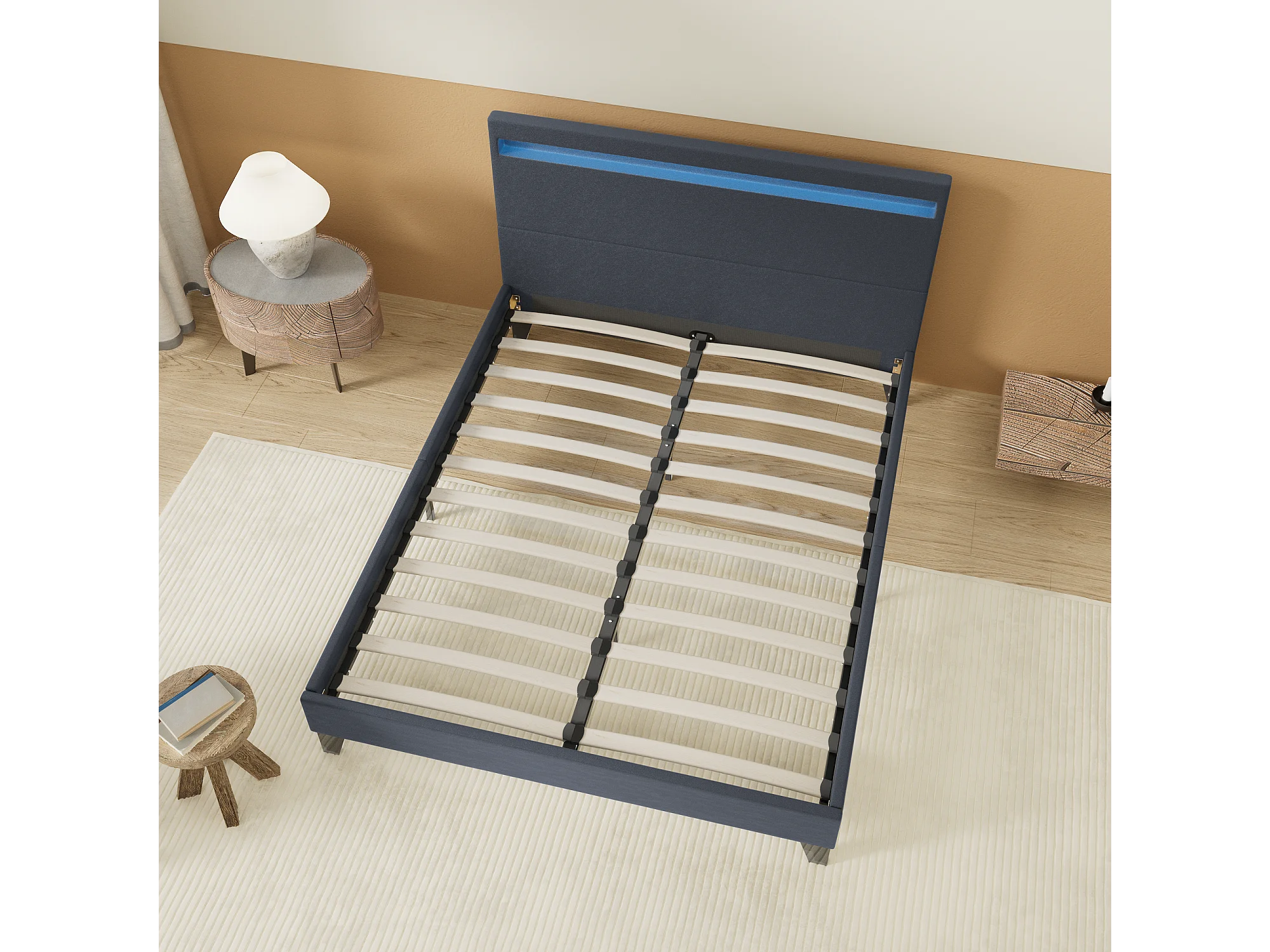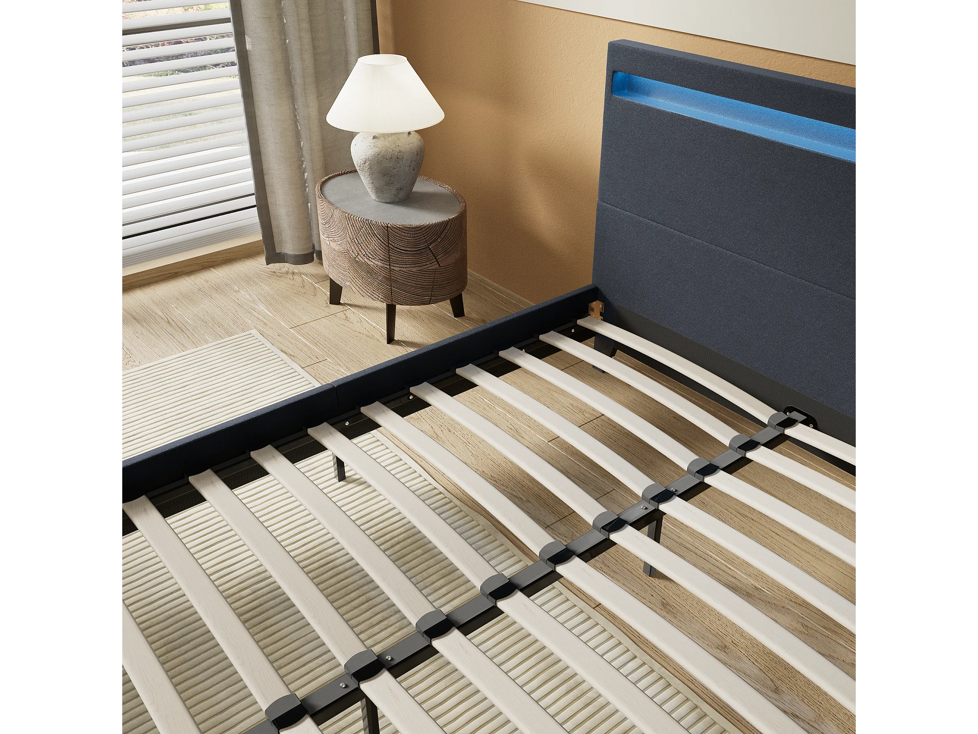 Lit 140x190cm avec tête de lit à éclairage LED noir
