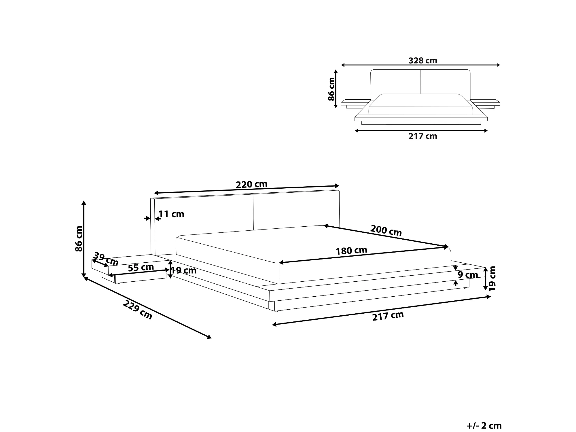 Lit avec LED Bouclé ZEN 180 x 200 cm LED Frêne foncé