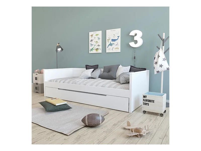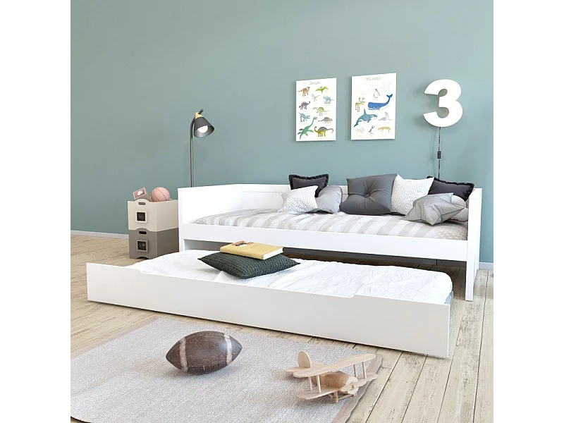 Lit avec lit pieds pliants bois blanc 90x200 cm