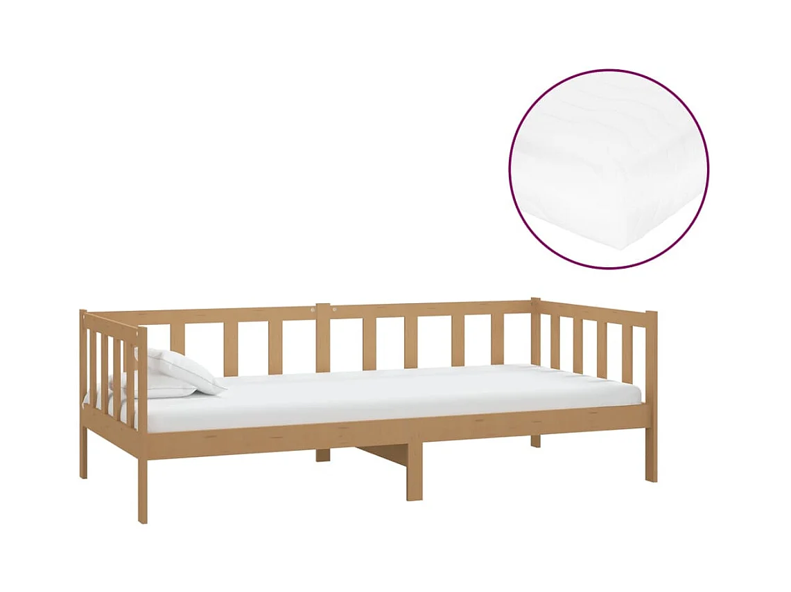 Lit avec matelas 90x200 Marron miel Bois de pin massif 16