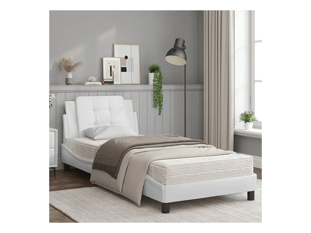 Lit avec matelas blanc 100x200 similicuir