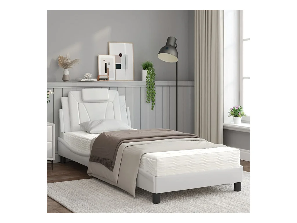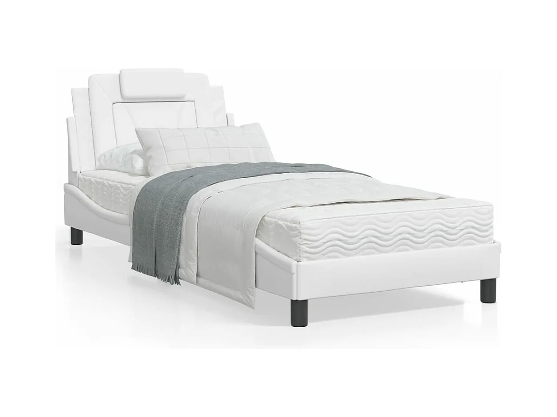 Lit avec matelas blanc 90x200 similicuir